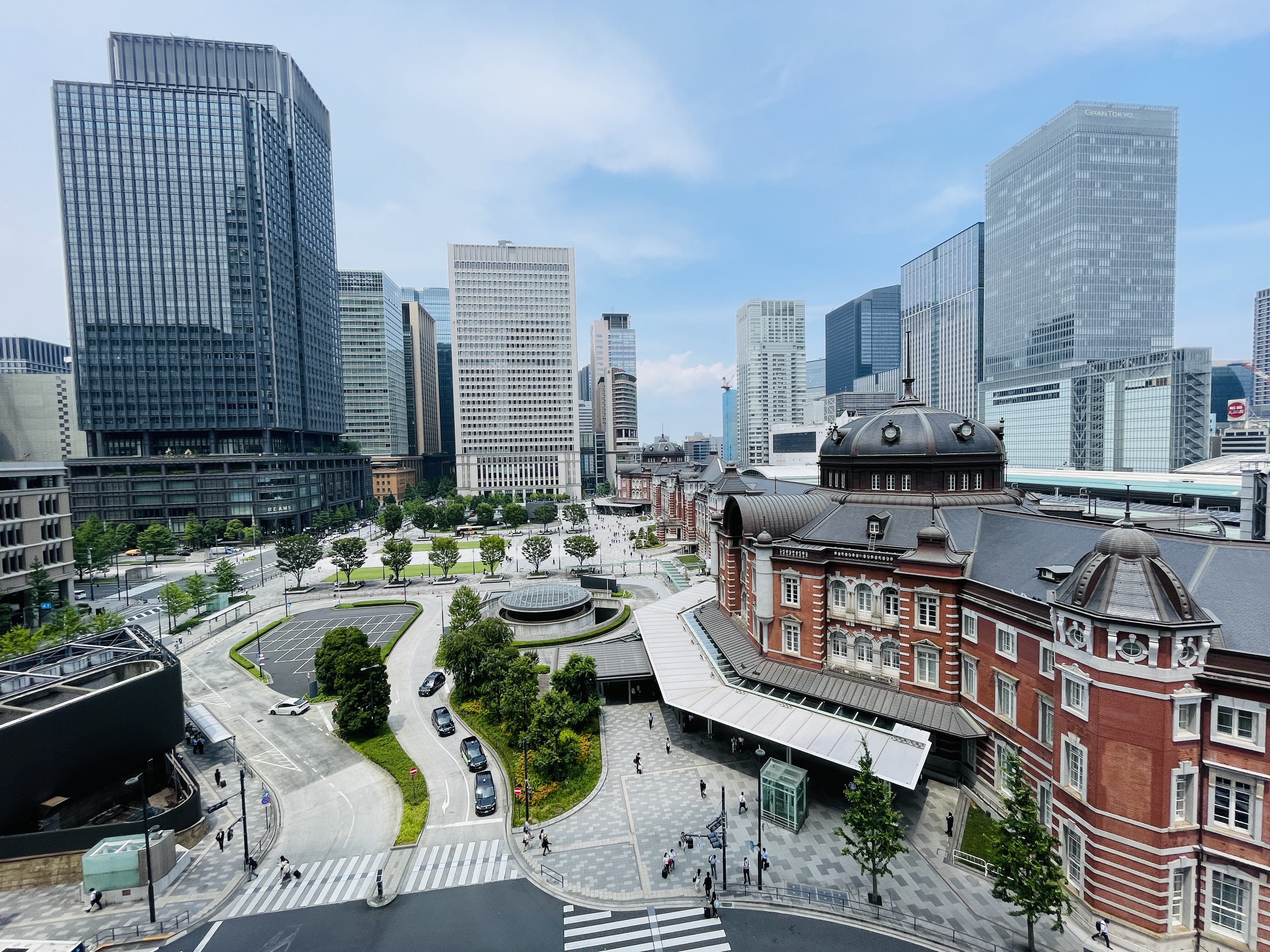 옥상에는 정원이 있어서 도쿄역을 내려다볼 수 있다