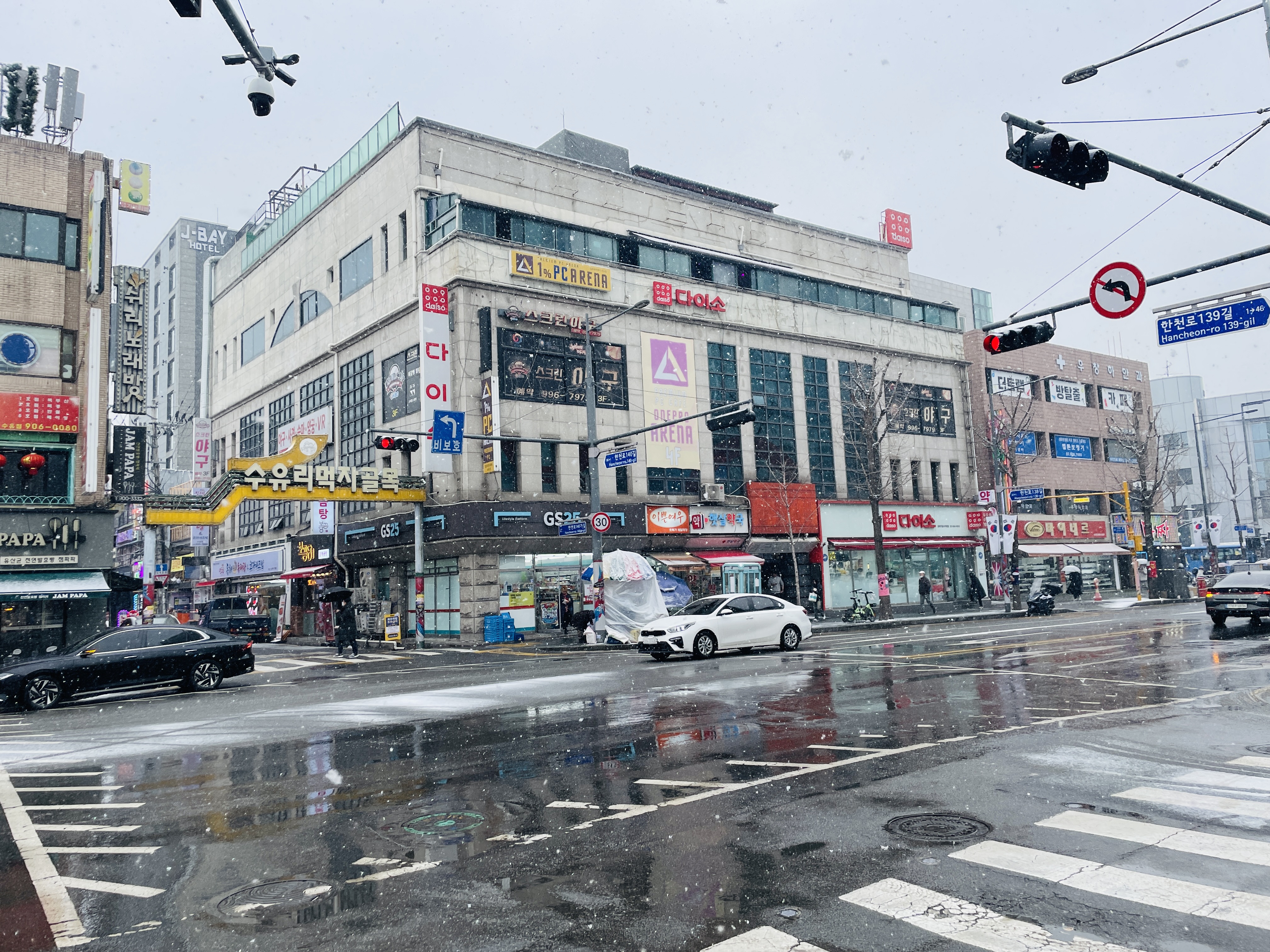 눈오는 날 학교를 헤치고 알바 가는 길