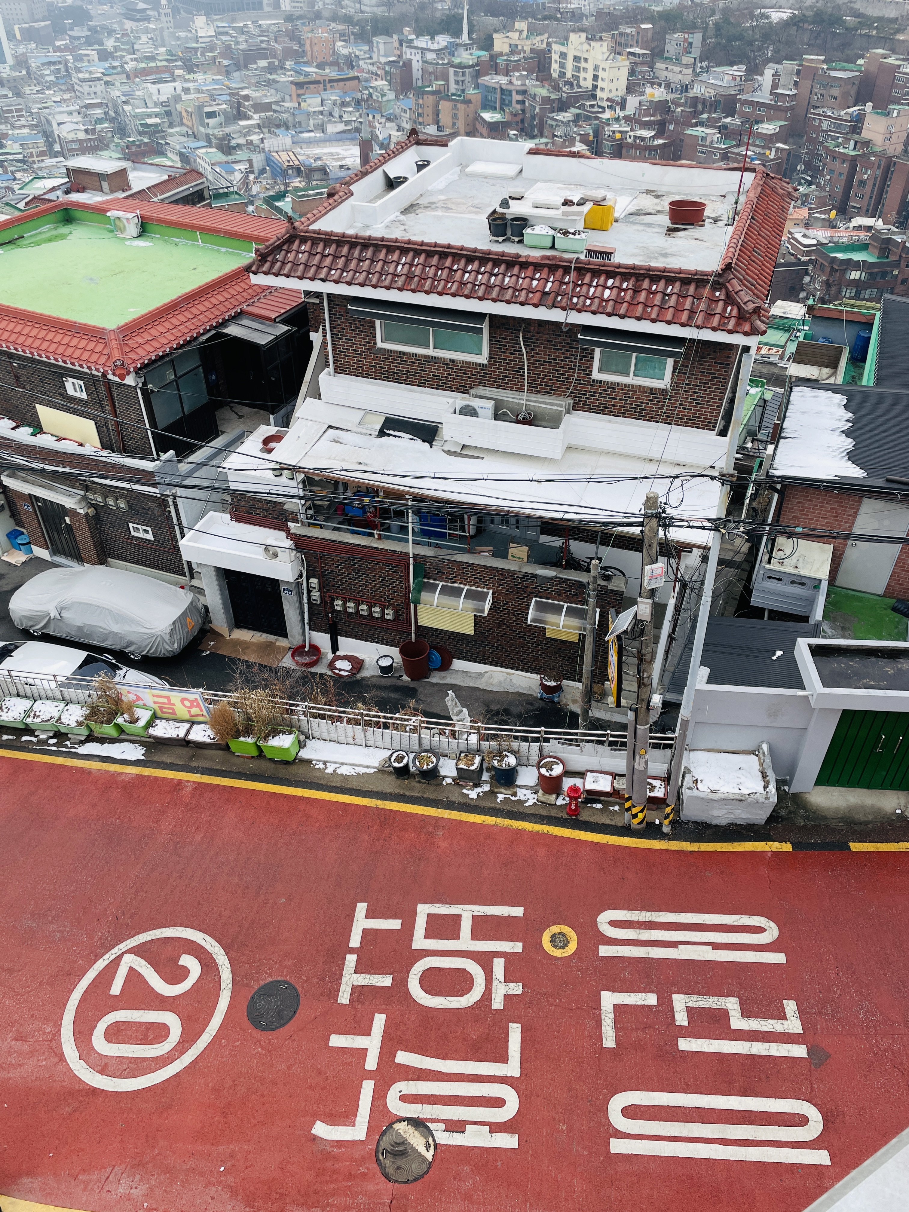 여전히 풀리지 않는 옥상 전망대 한 층 아래서 감상한 종묘