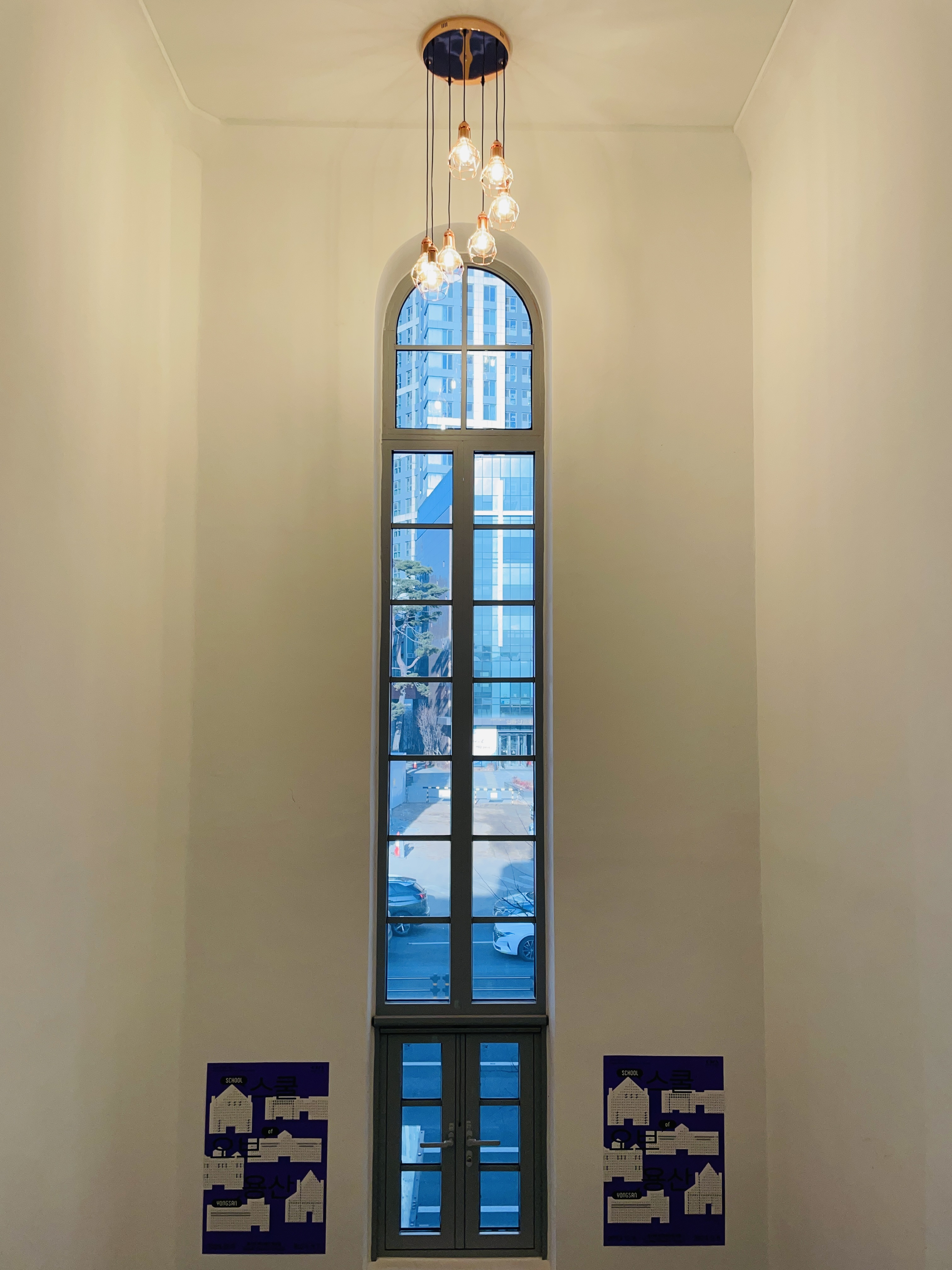 문을 둘러싼 스테인드 글라스가 인상적이다