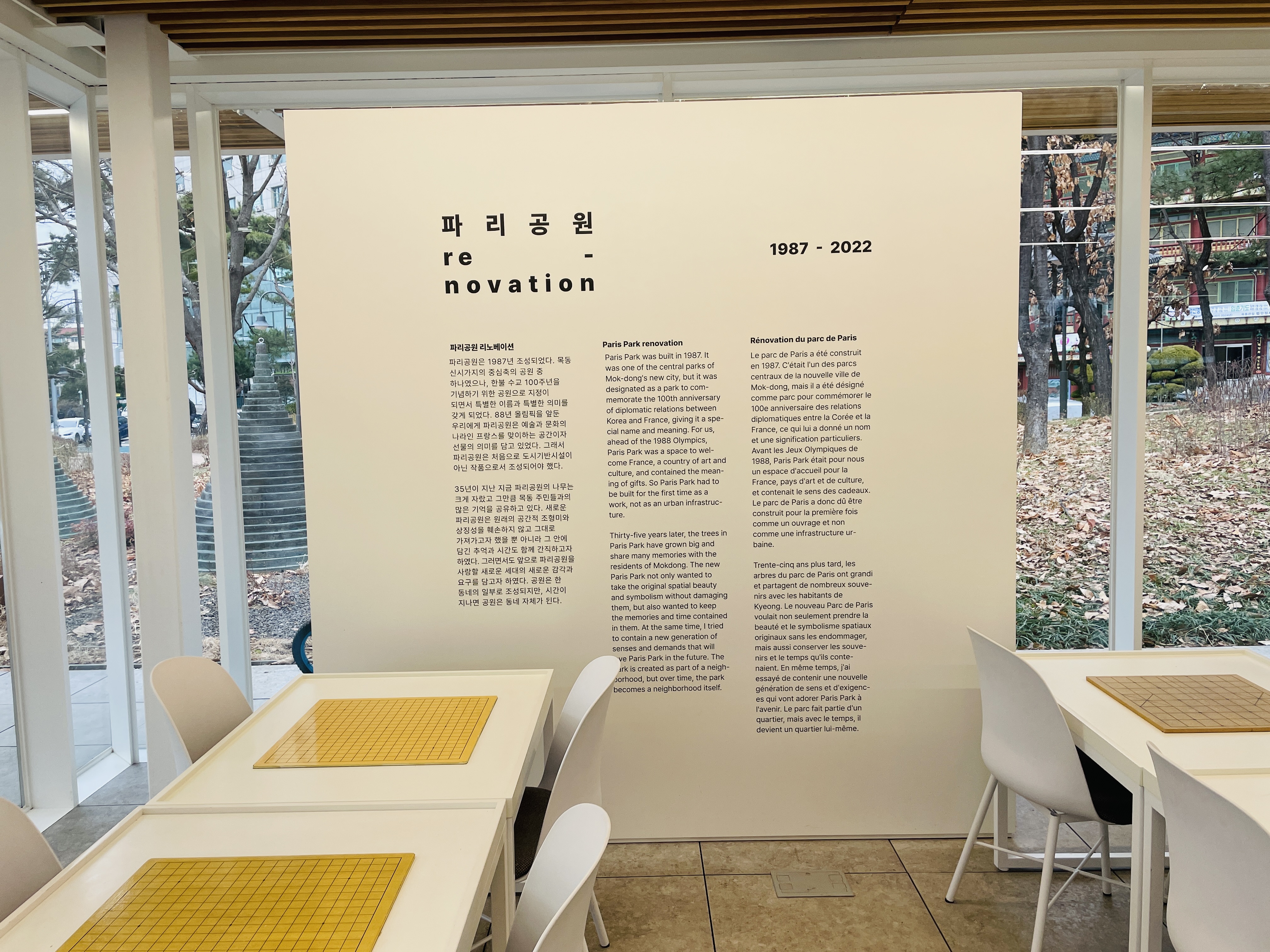 바둑을 둘 수 있는 책상이 이곳저곳에 있었다