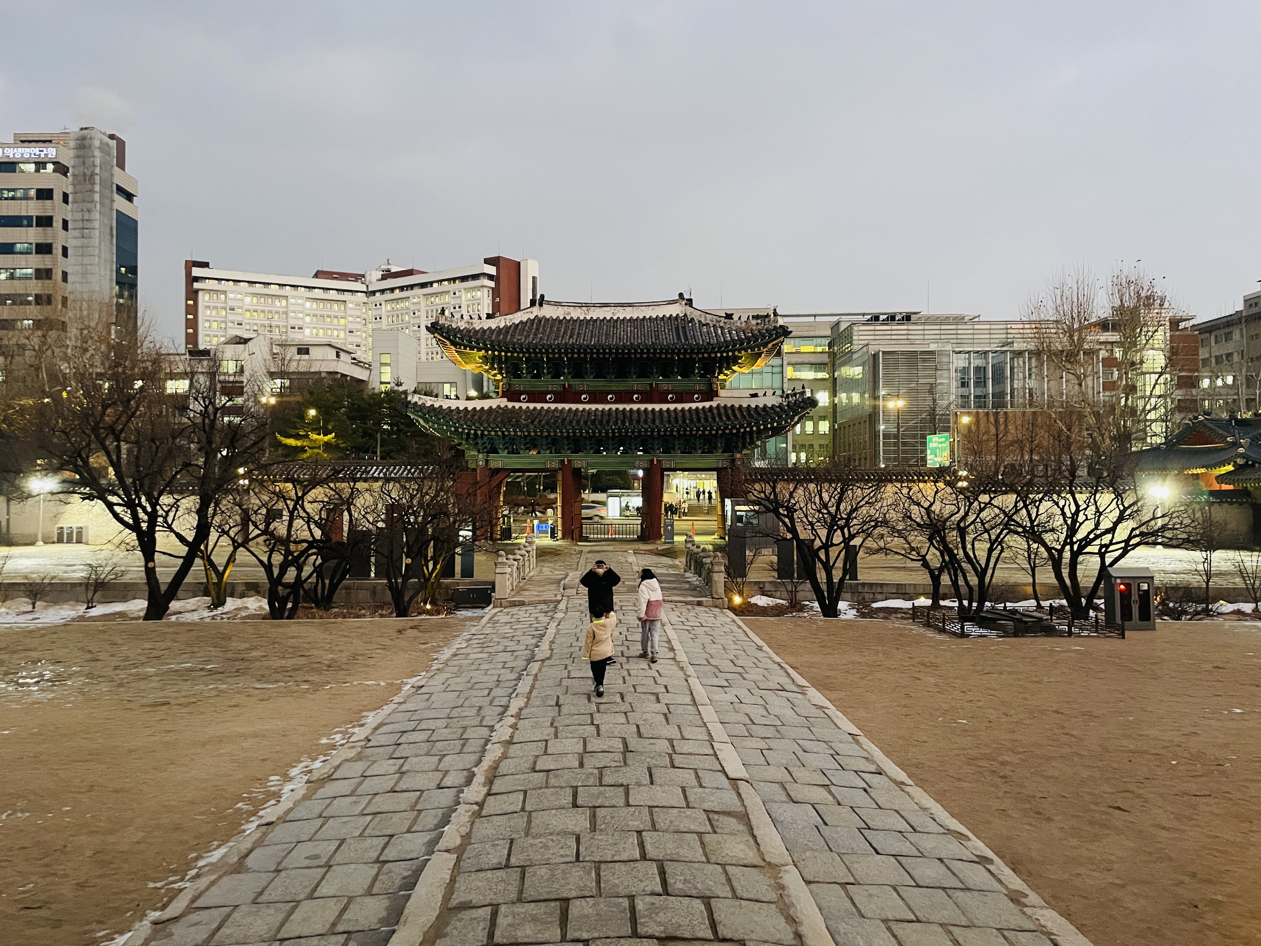 궁궐 너머로 서울대병원 건물이 보인다