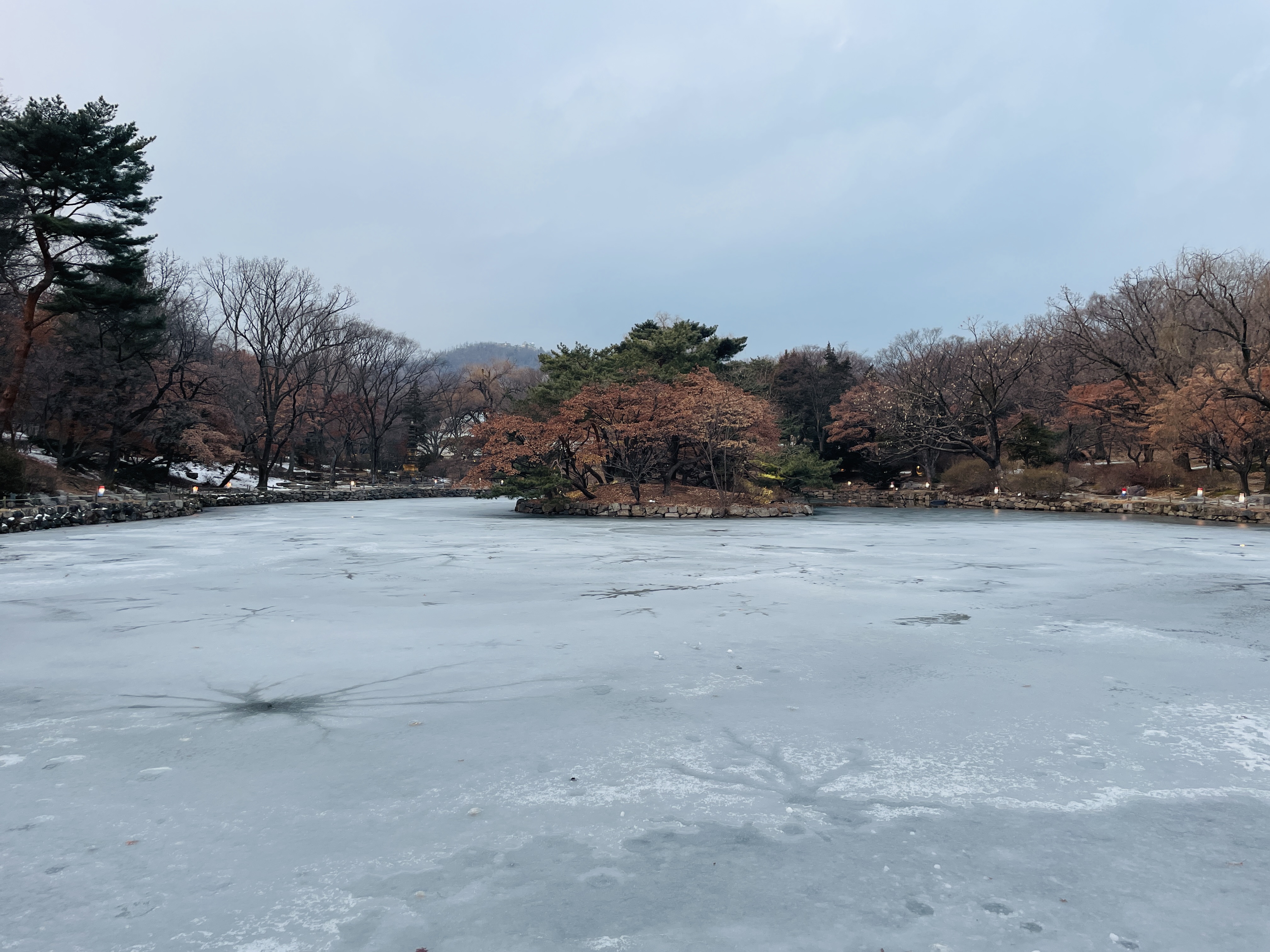 호수가 꽁꽁 얼었다