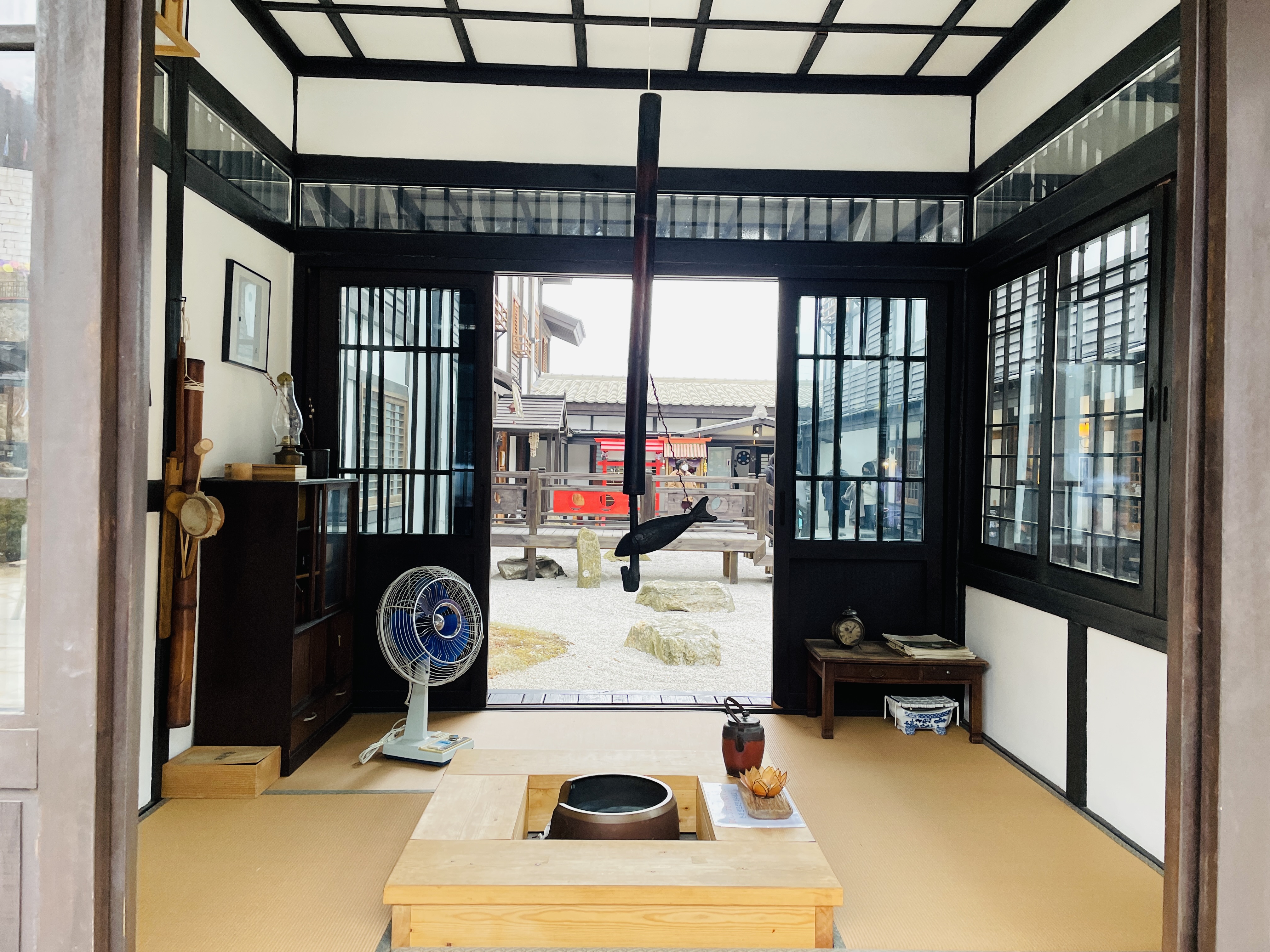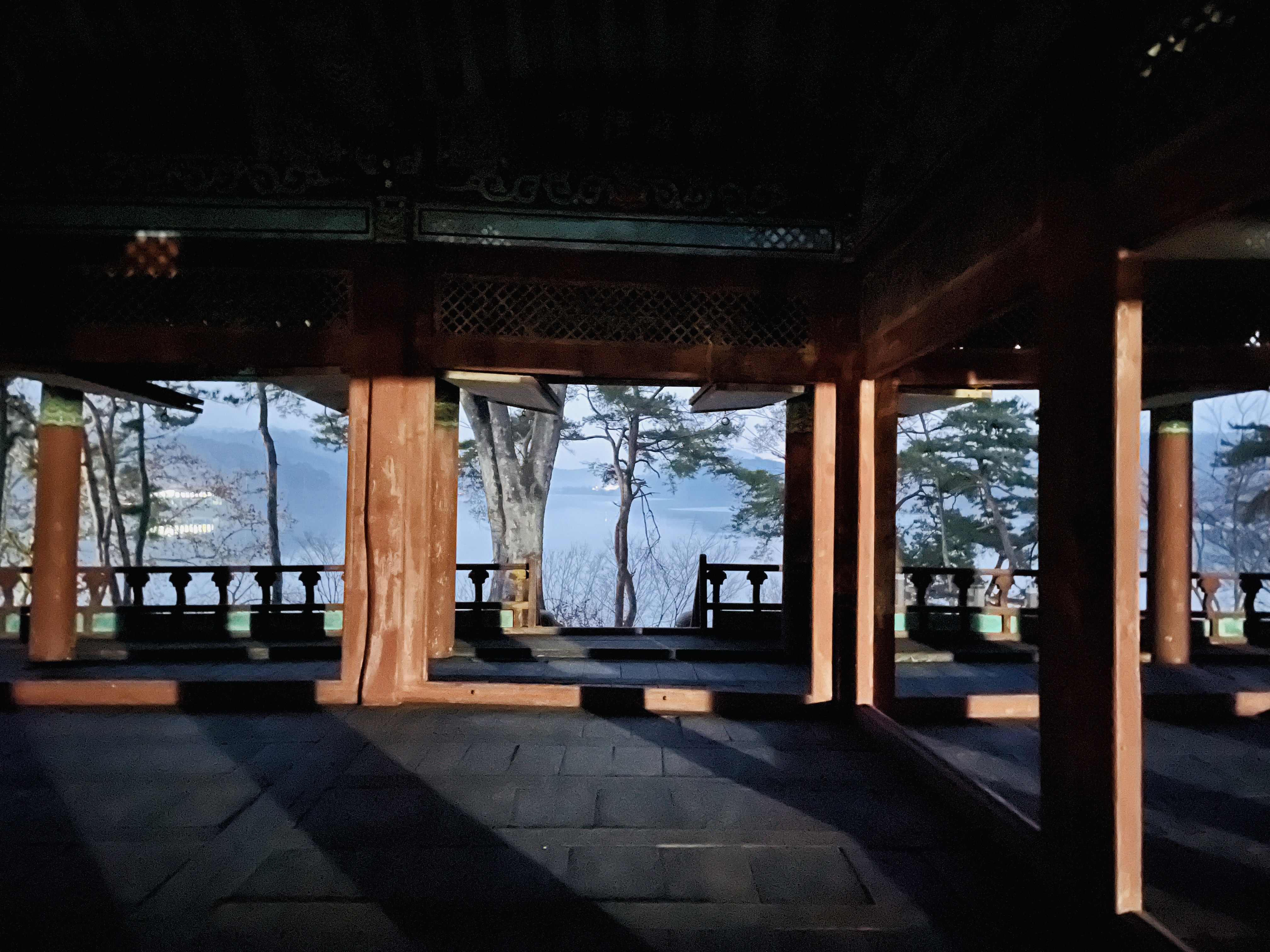 저 멀리 보이는 일본식 지붕 건물인가 보다