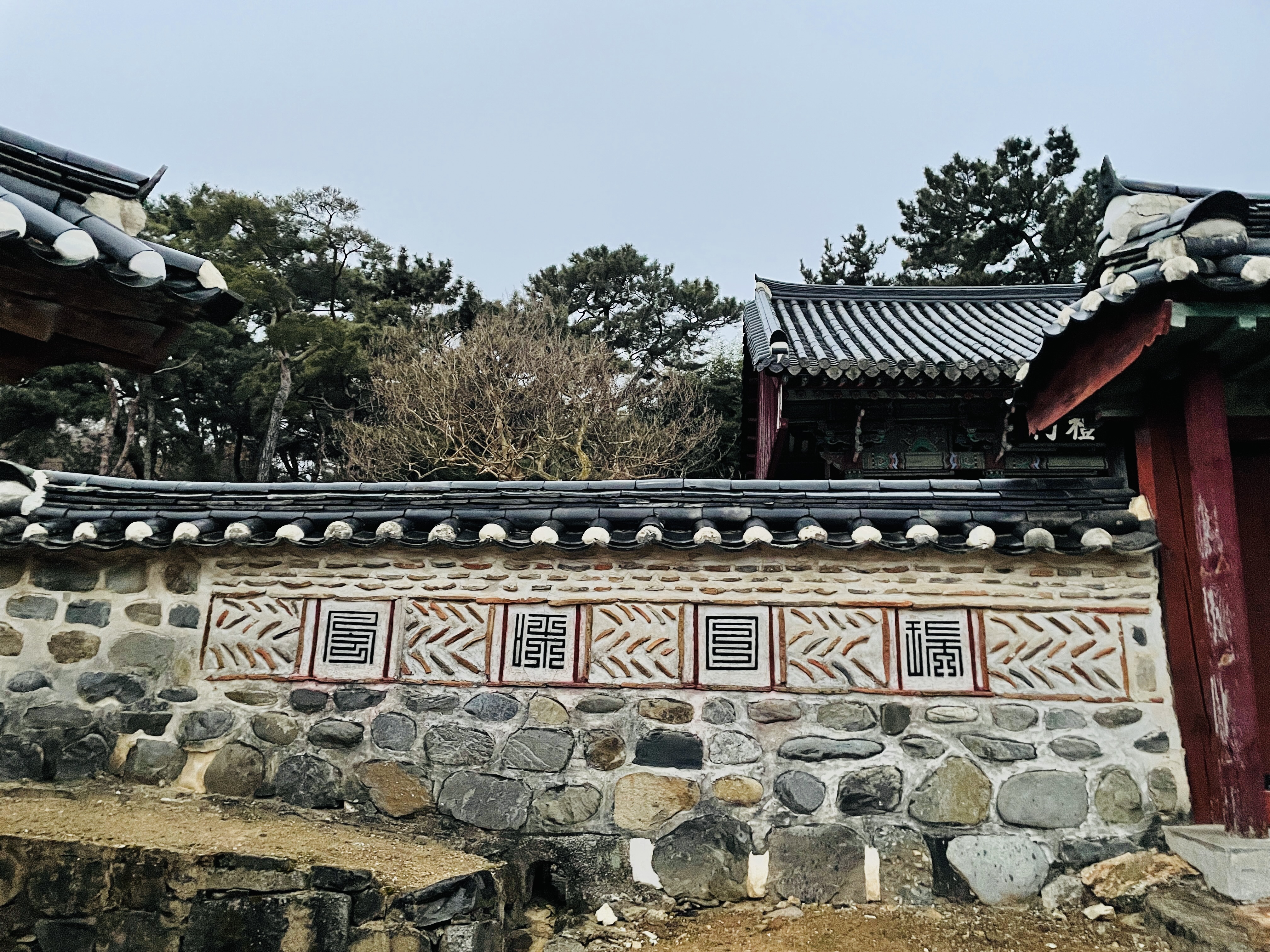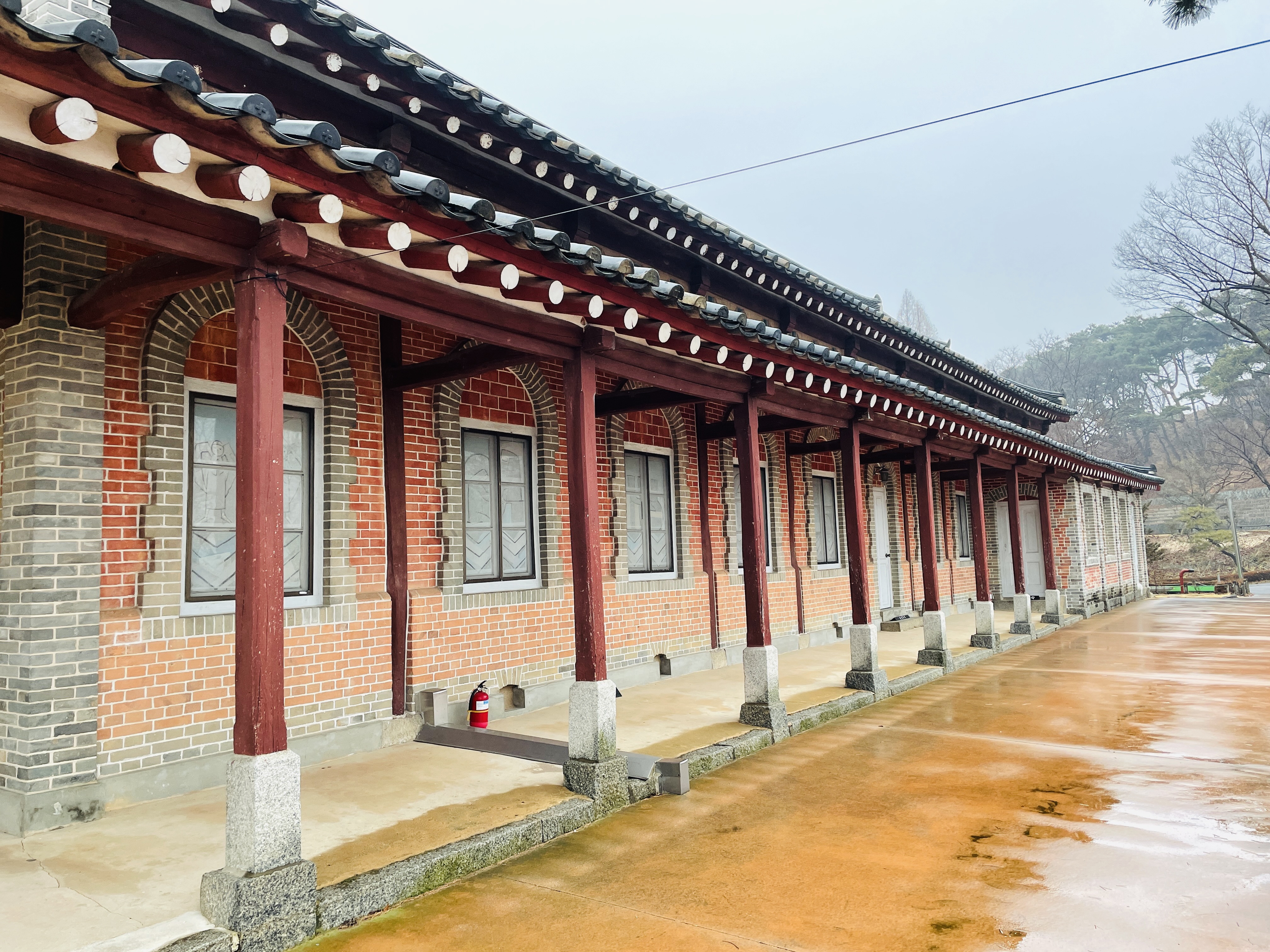 벽돌건물에 회랑은 기와로 되어있다
