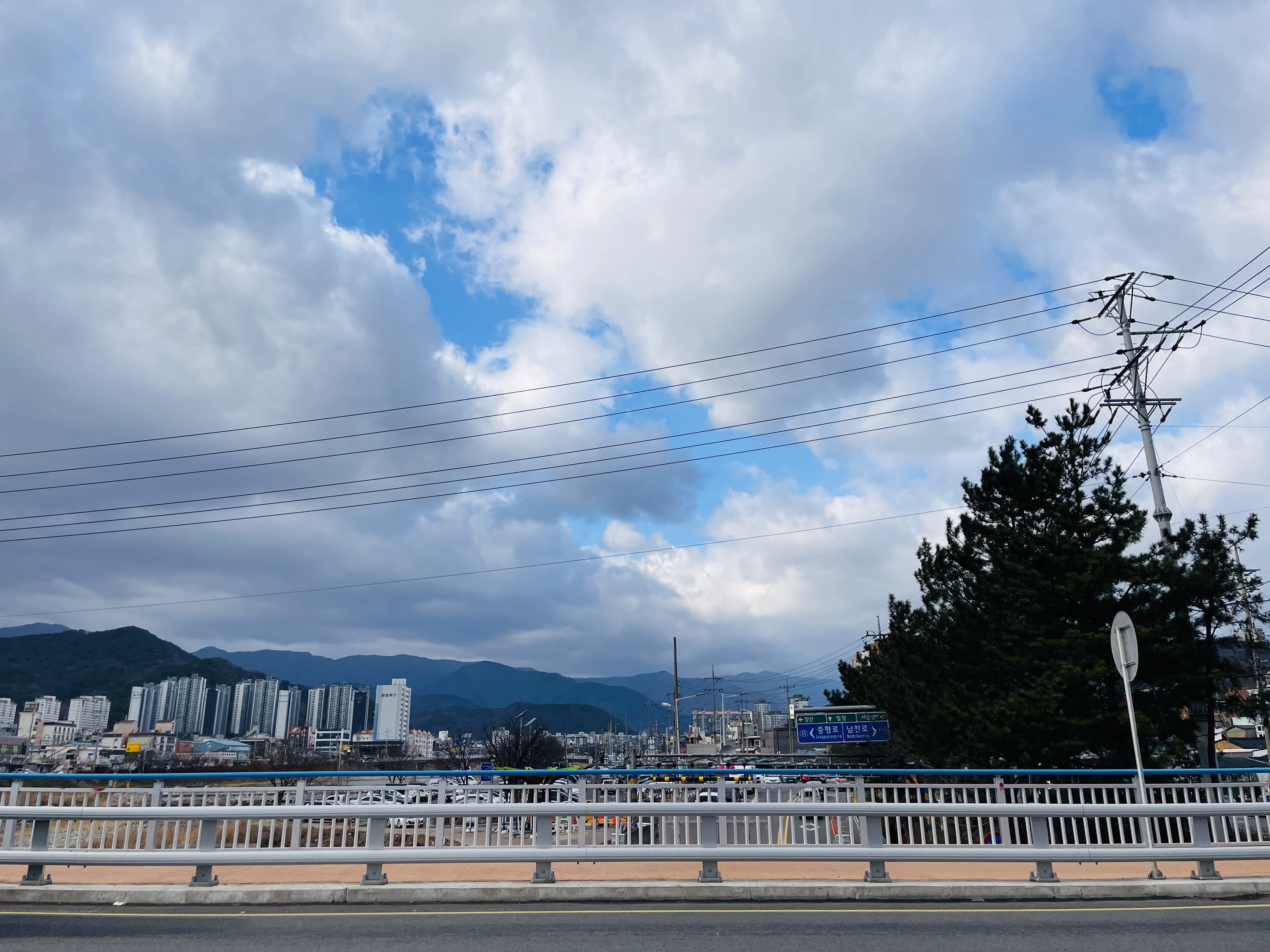 구름이 껴있지만 사이사이로 맑은 하늘이 보인다