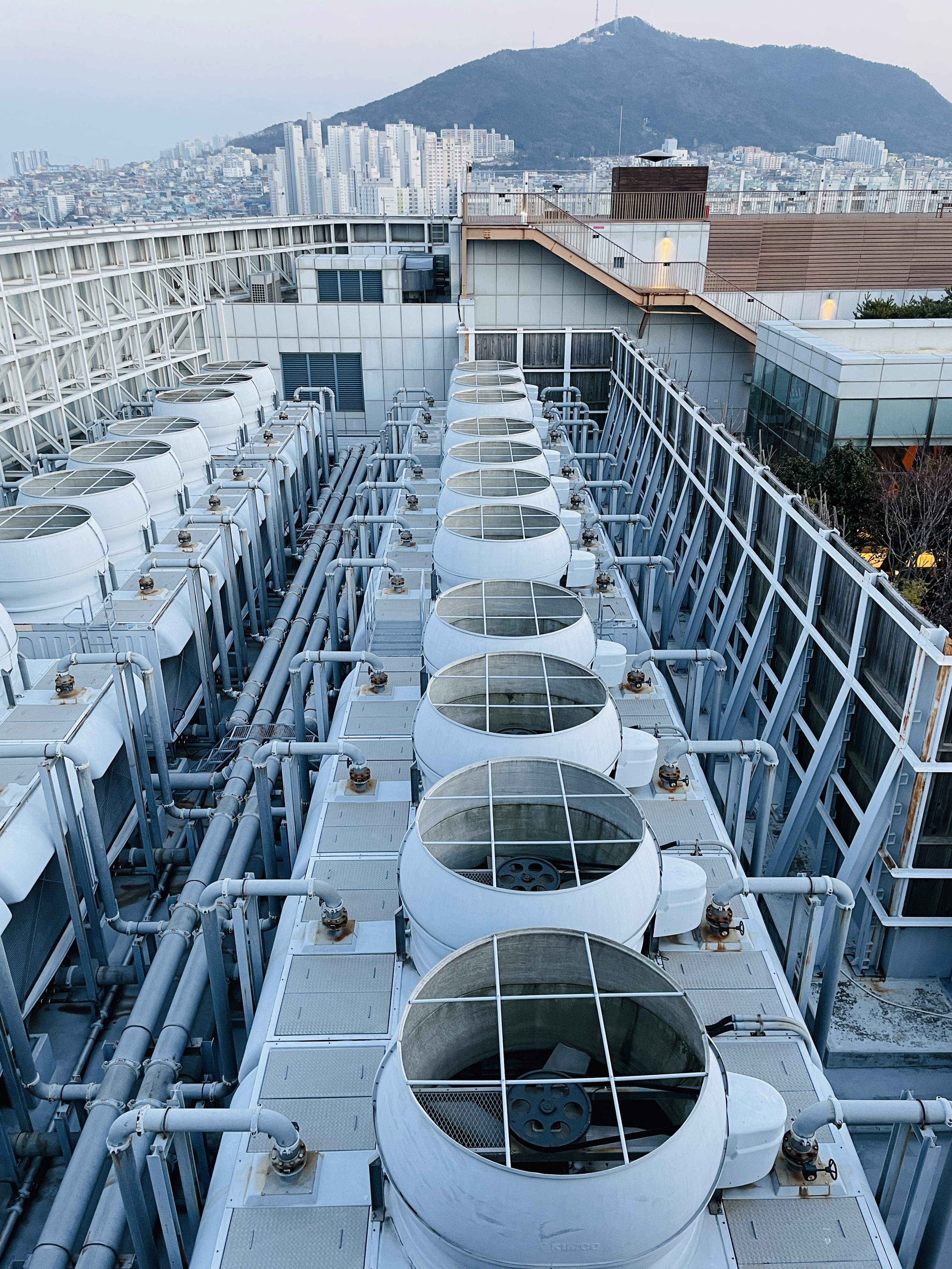 건물에 큰 굴뚝이 있었다