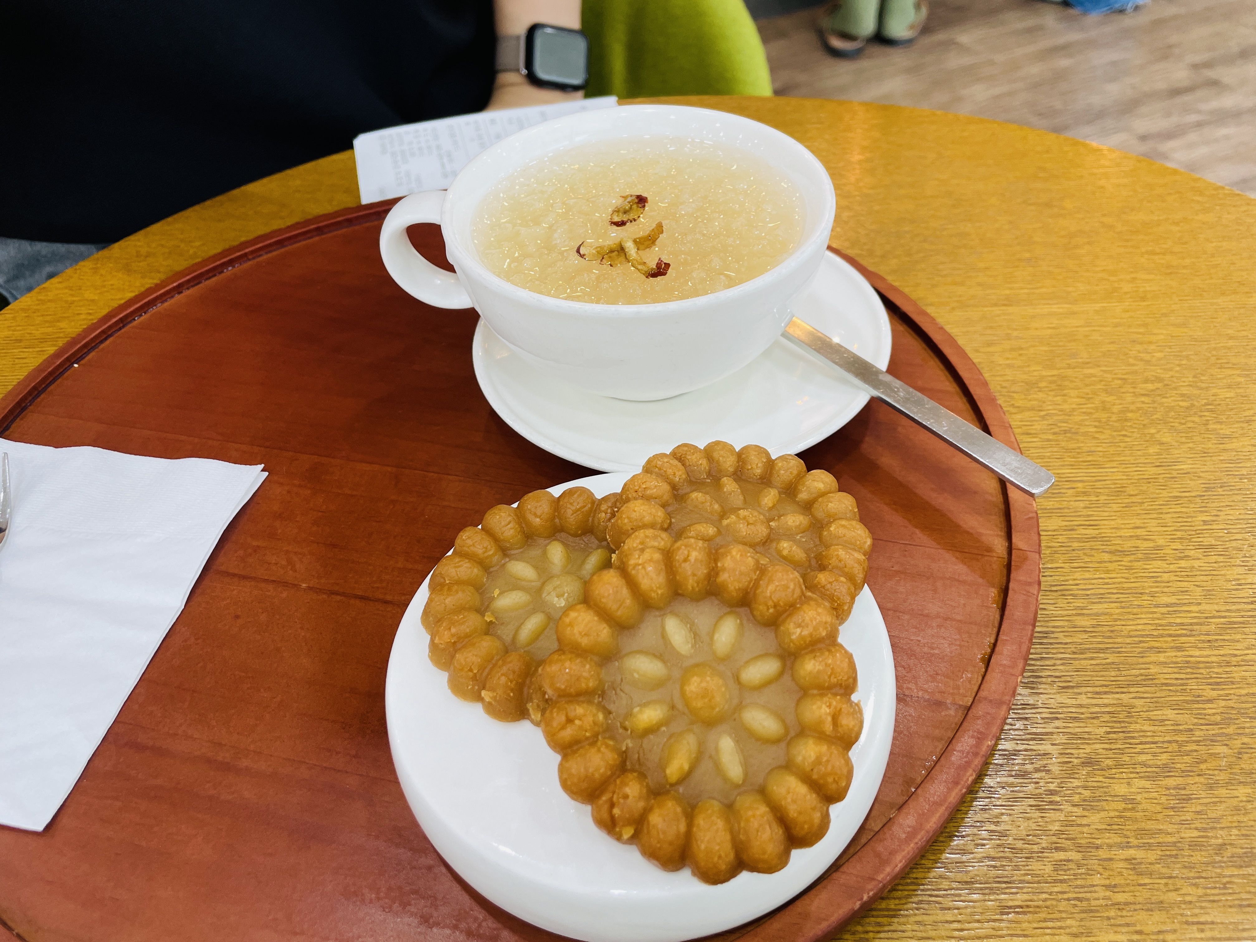 찻집에 와서 약과를 시켰는데 연화문(연꽃무늬) 모양이었다