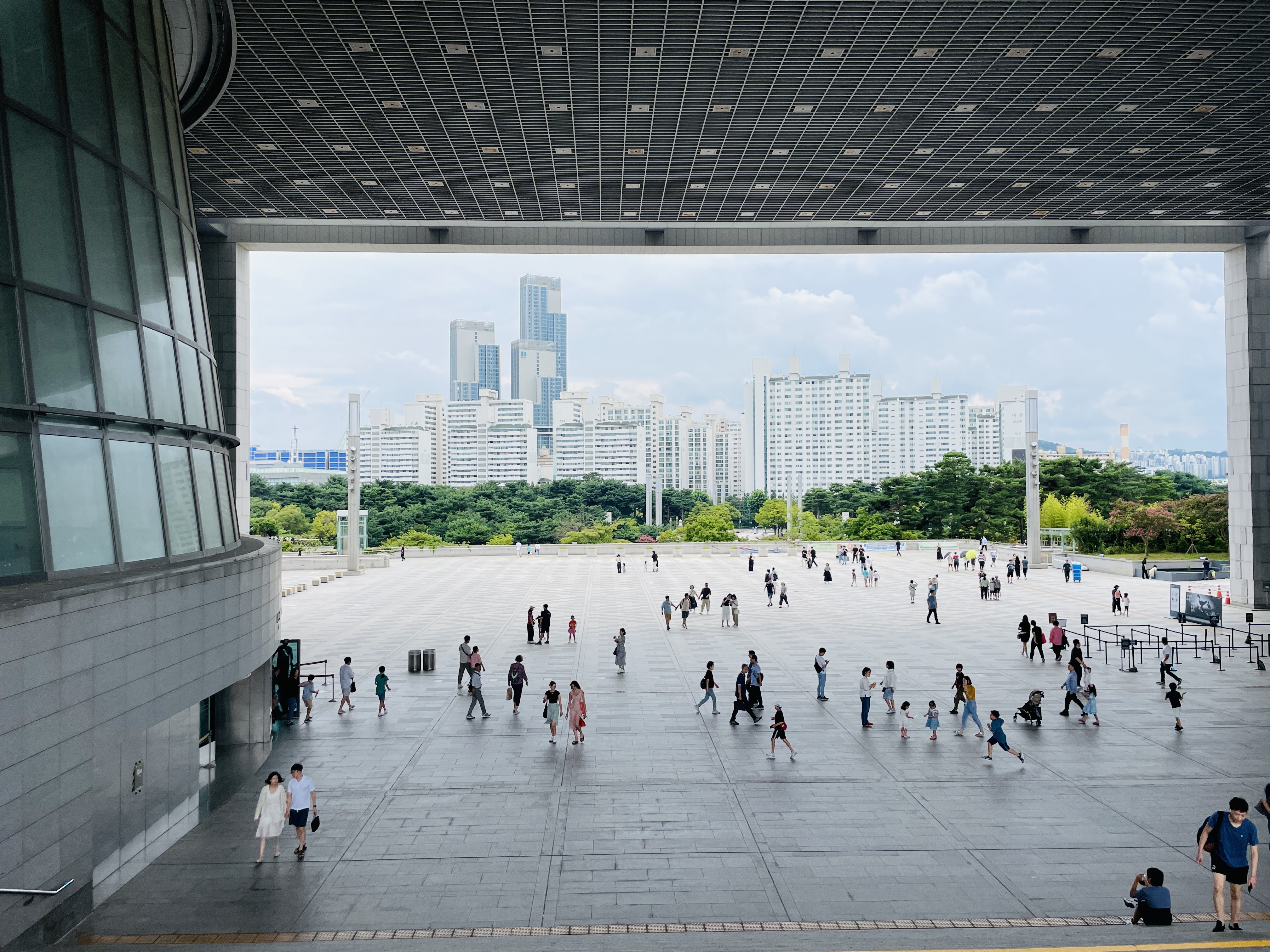 박물관에서 밖을 보았을 때 아파트 단지가 즐비하게 늘어선 모습이 눈에 띈다