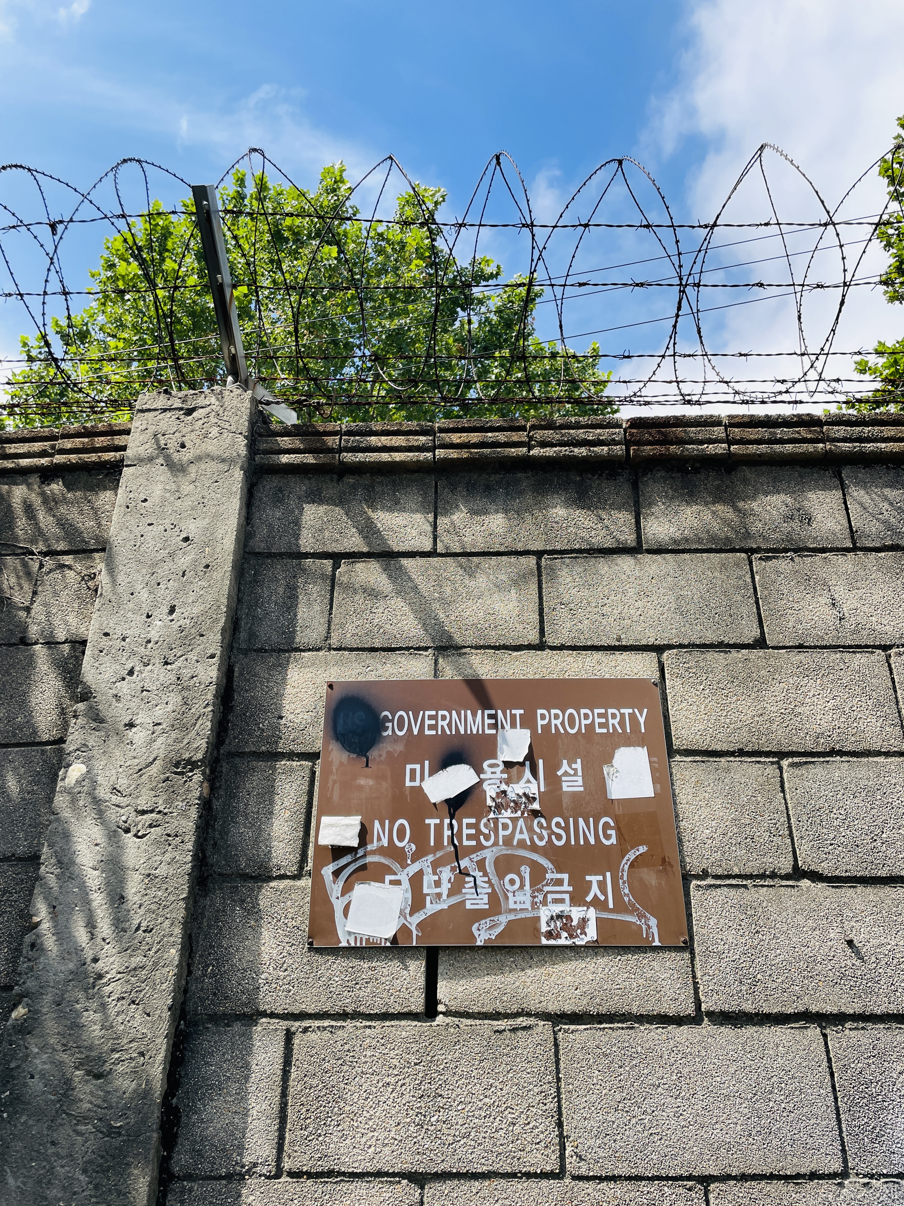 미군기지 근처라 이런식으로 경고문구가 벽에 붙어있다