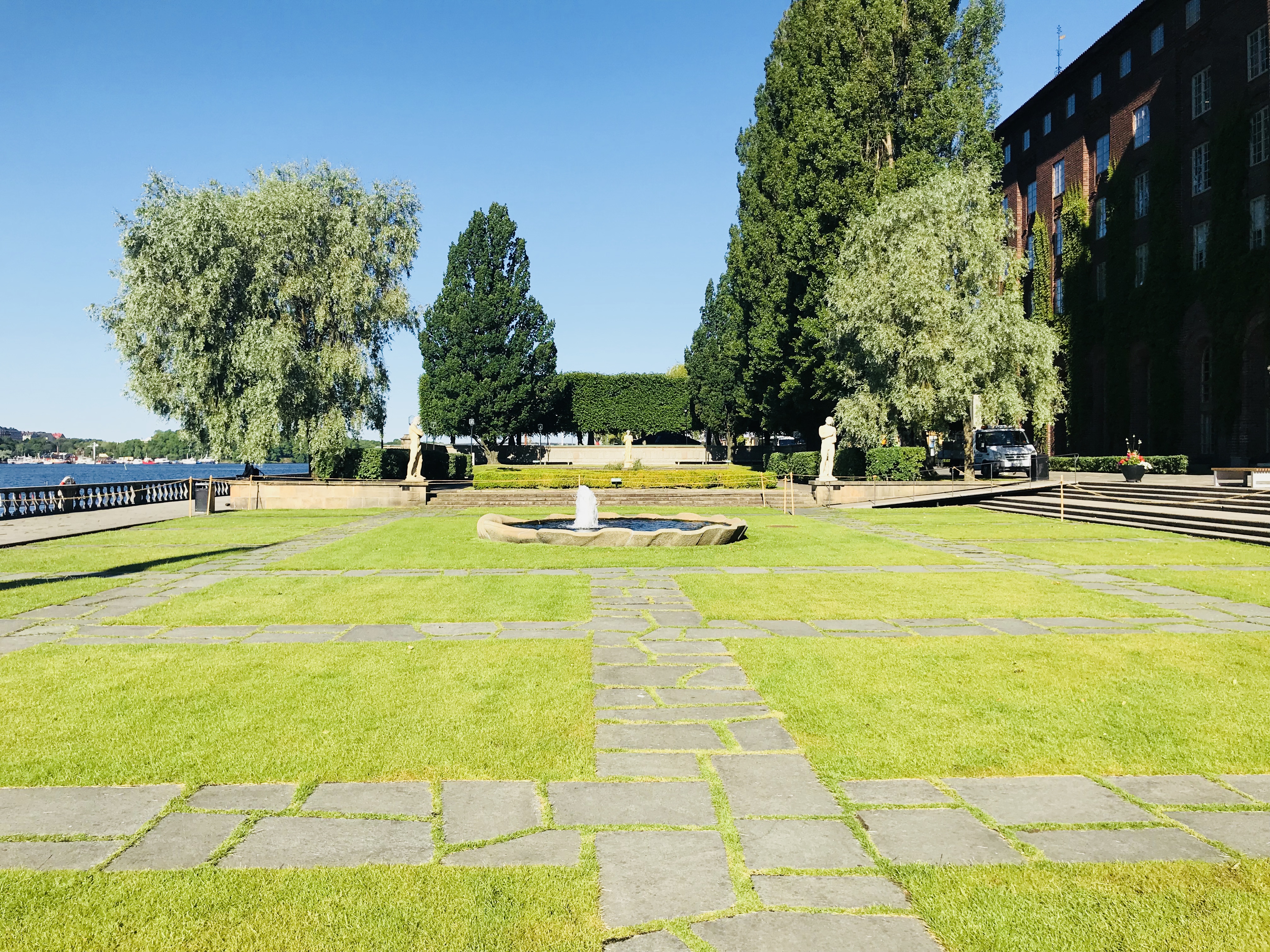 잔디와 보도블럭이 교차하는 이상한 광장