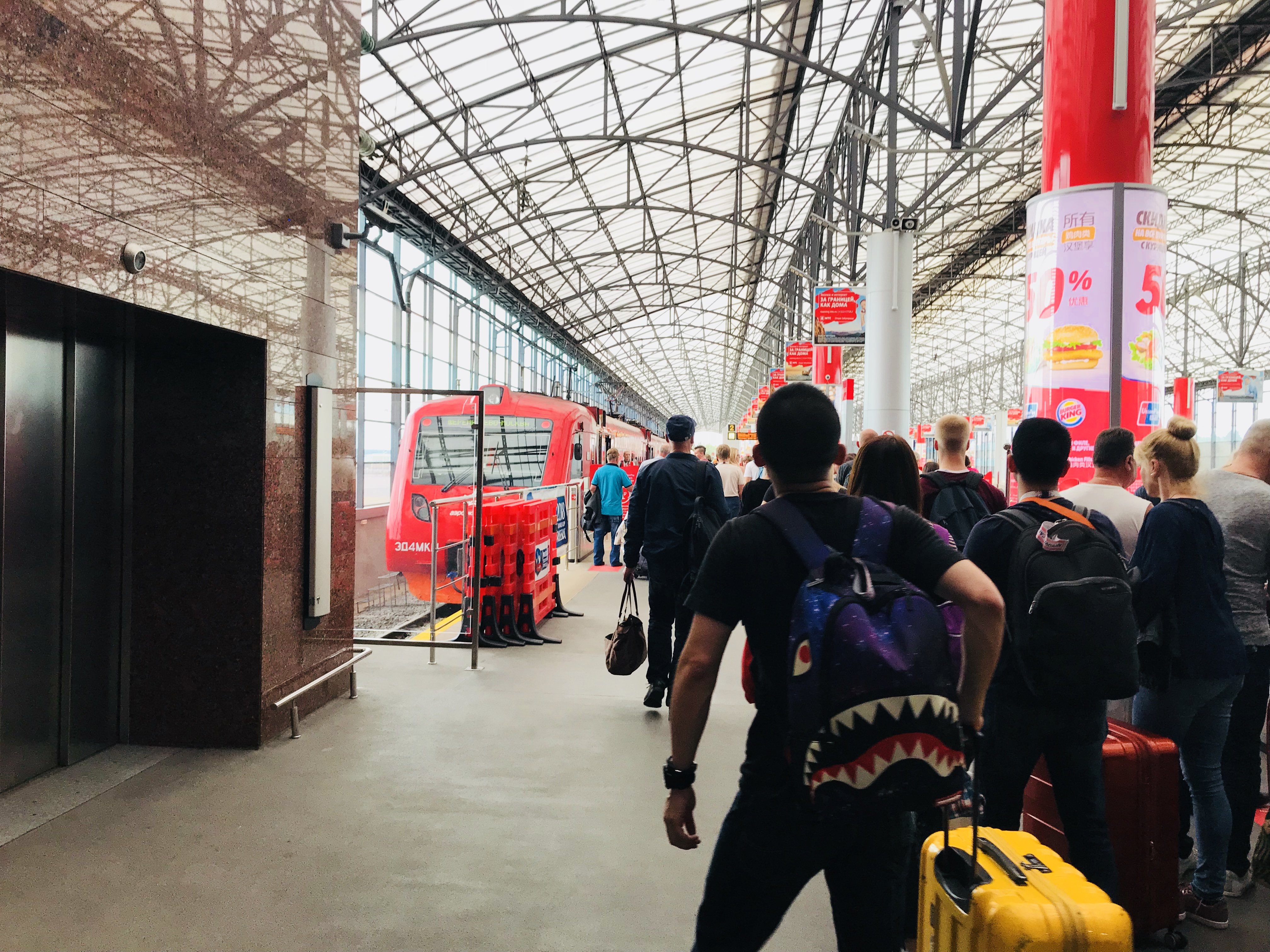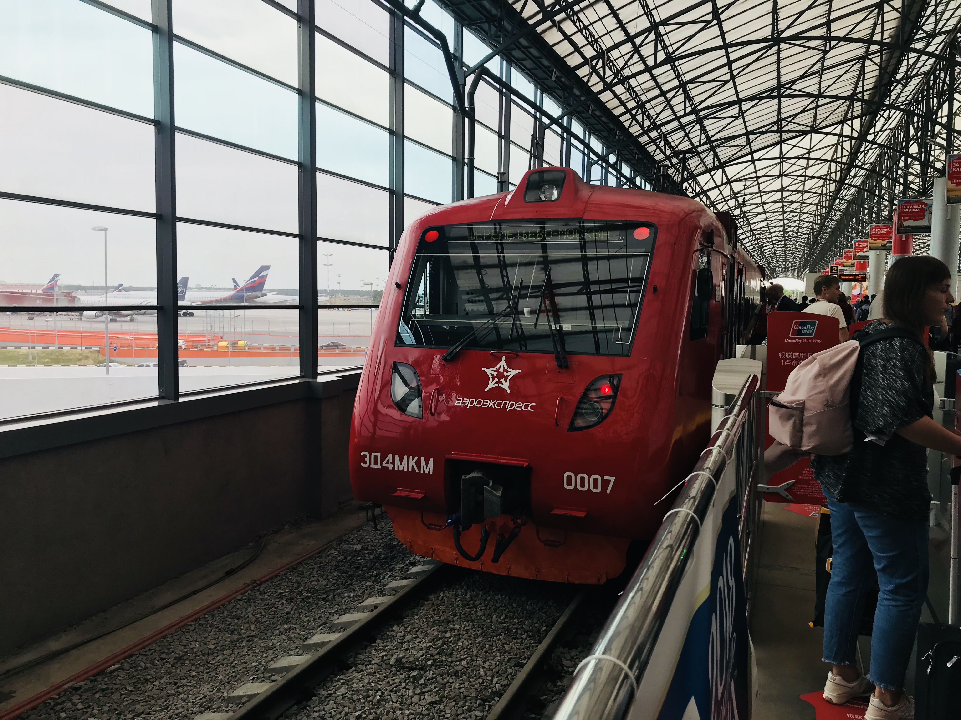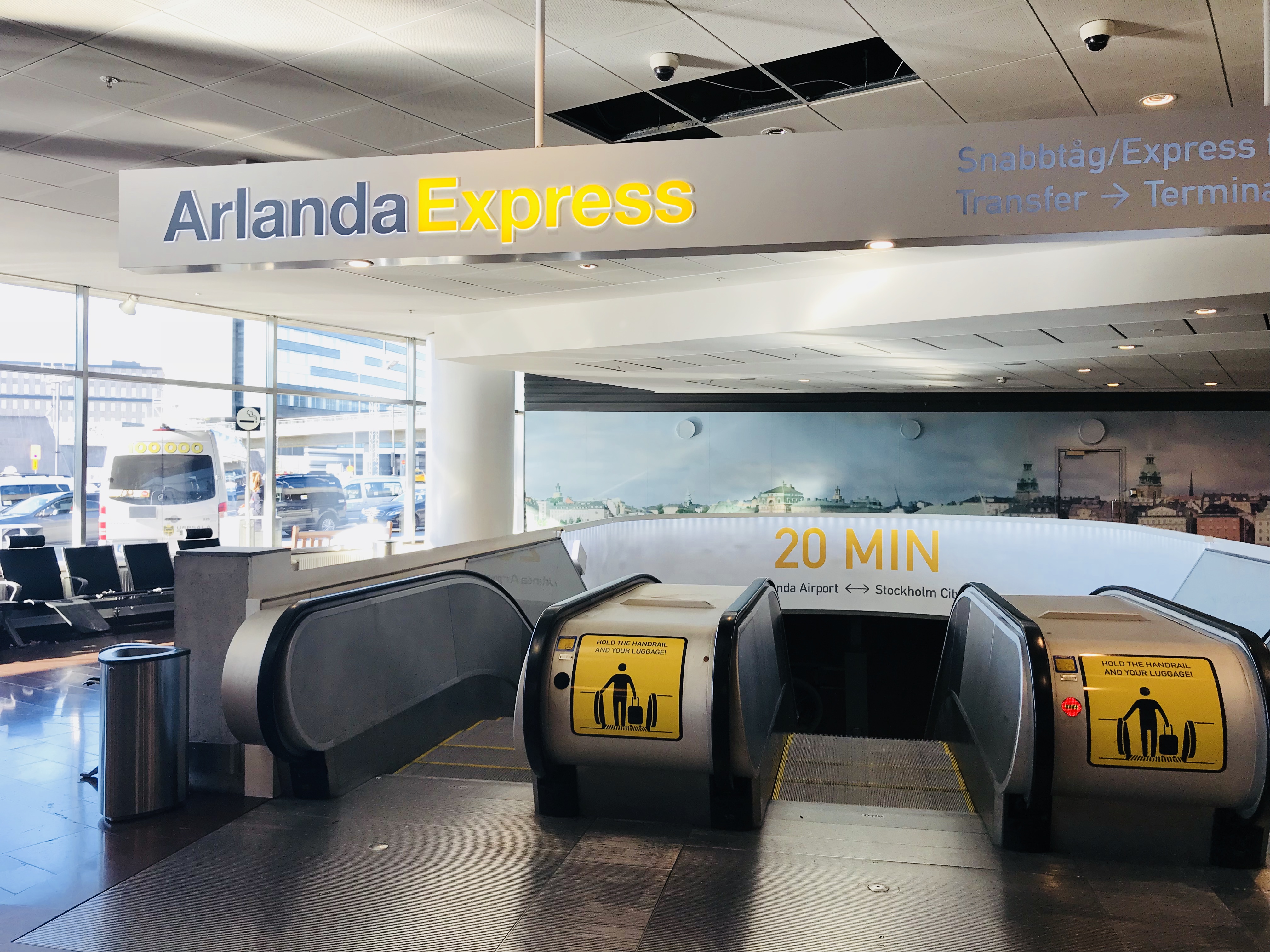 공항으로 가는 역에 도착