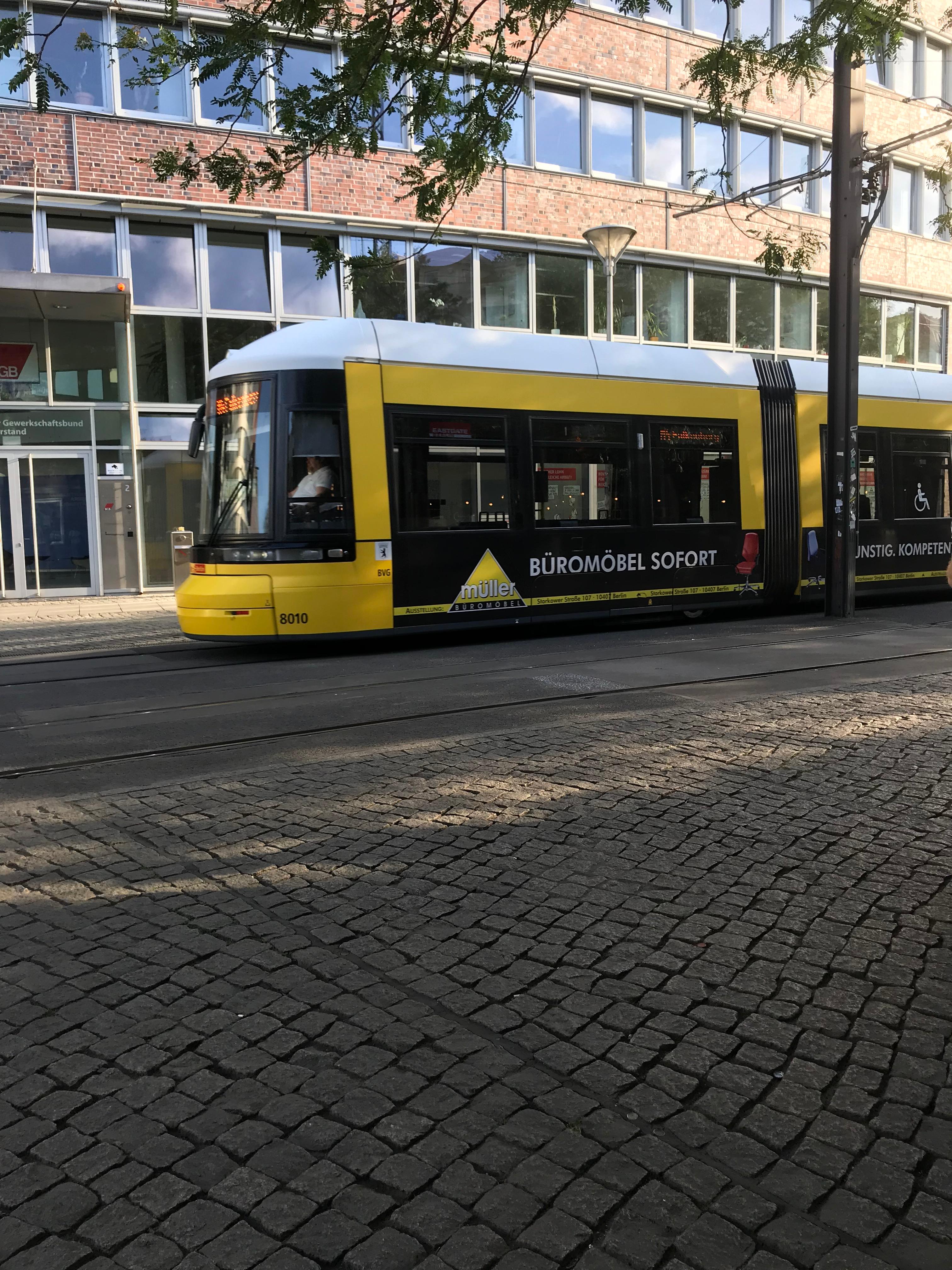베를린에는 지하철 뿐만 아니라 이렇게 노면전철도 돌아다닌다