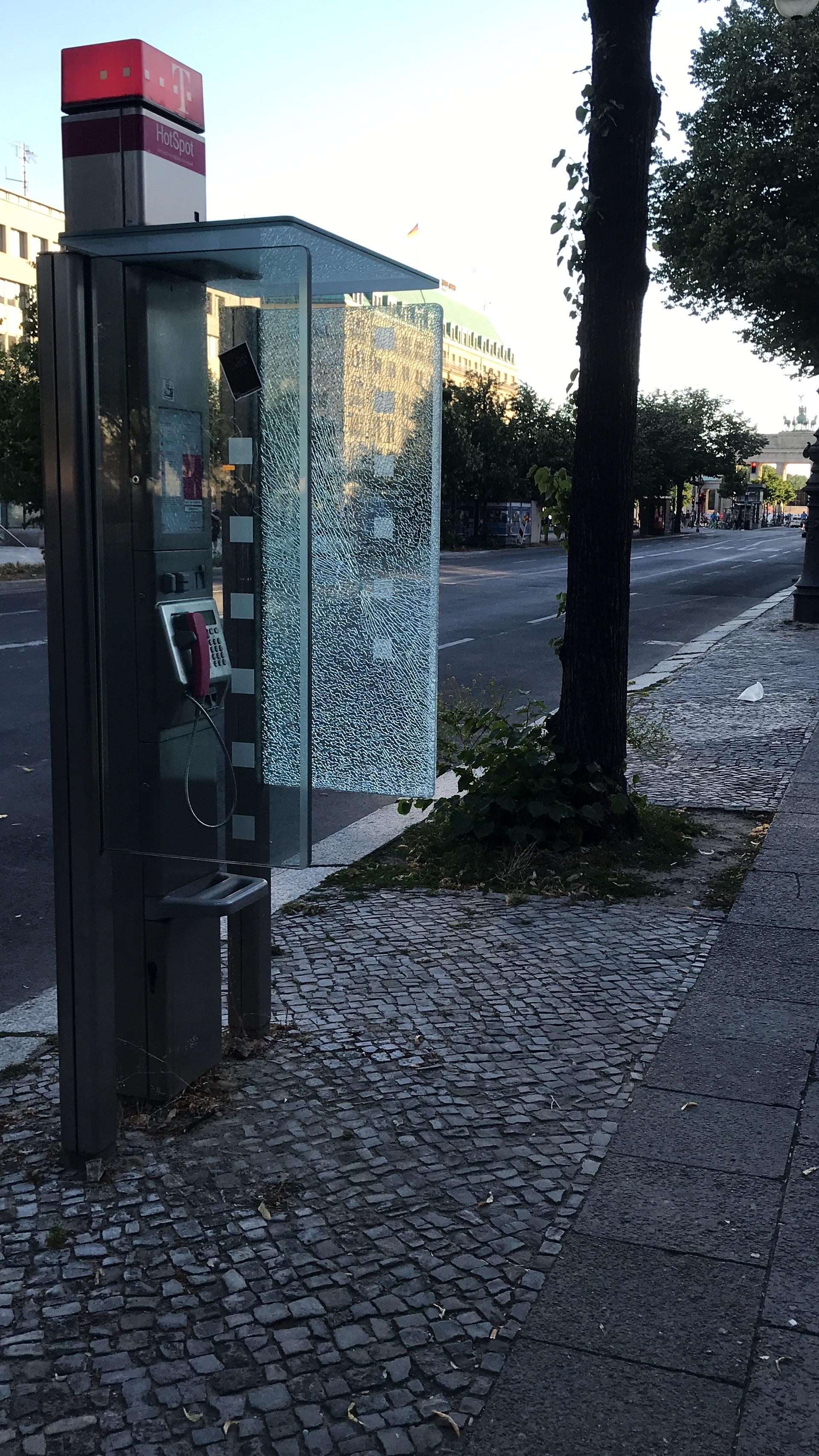 깨진채로 유지된 공중전화
