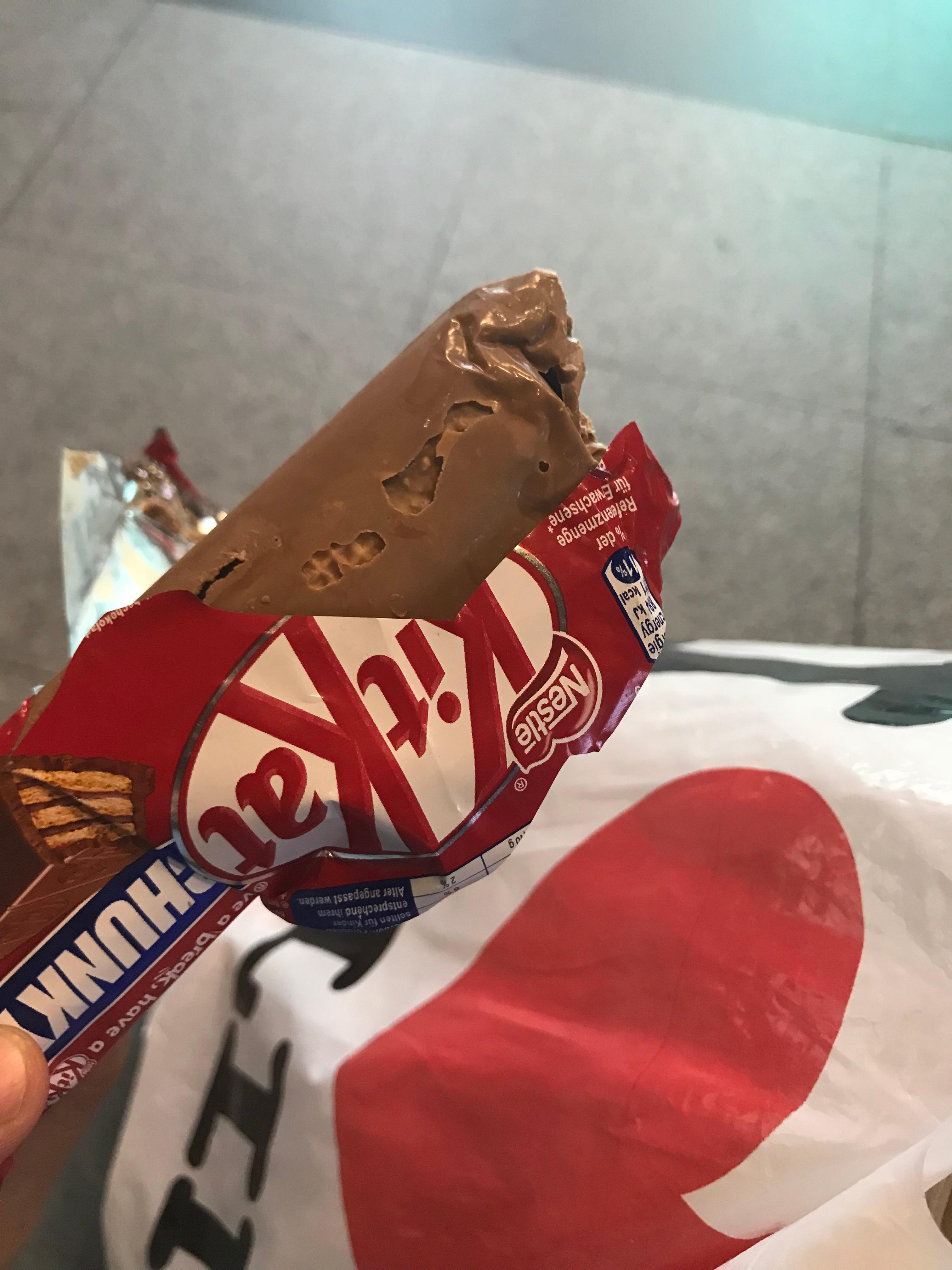 햄버거 냠냠 먹고 반쯤 녹은 킷캣 먹기