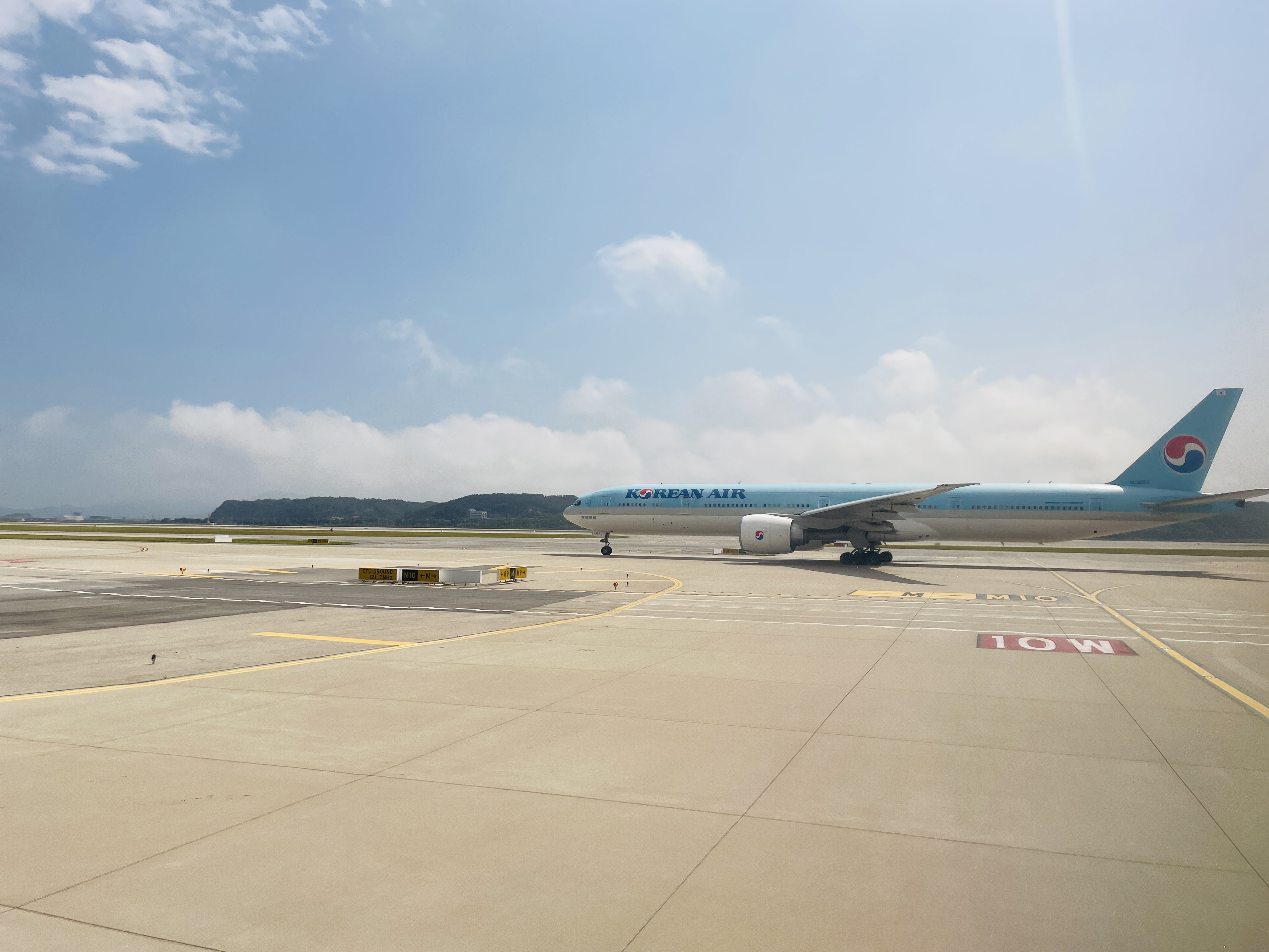 이주를 위해 타고온 비행기라 뜻깊어서 천천히 나오는 길이다