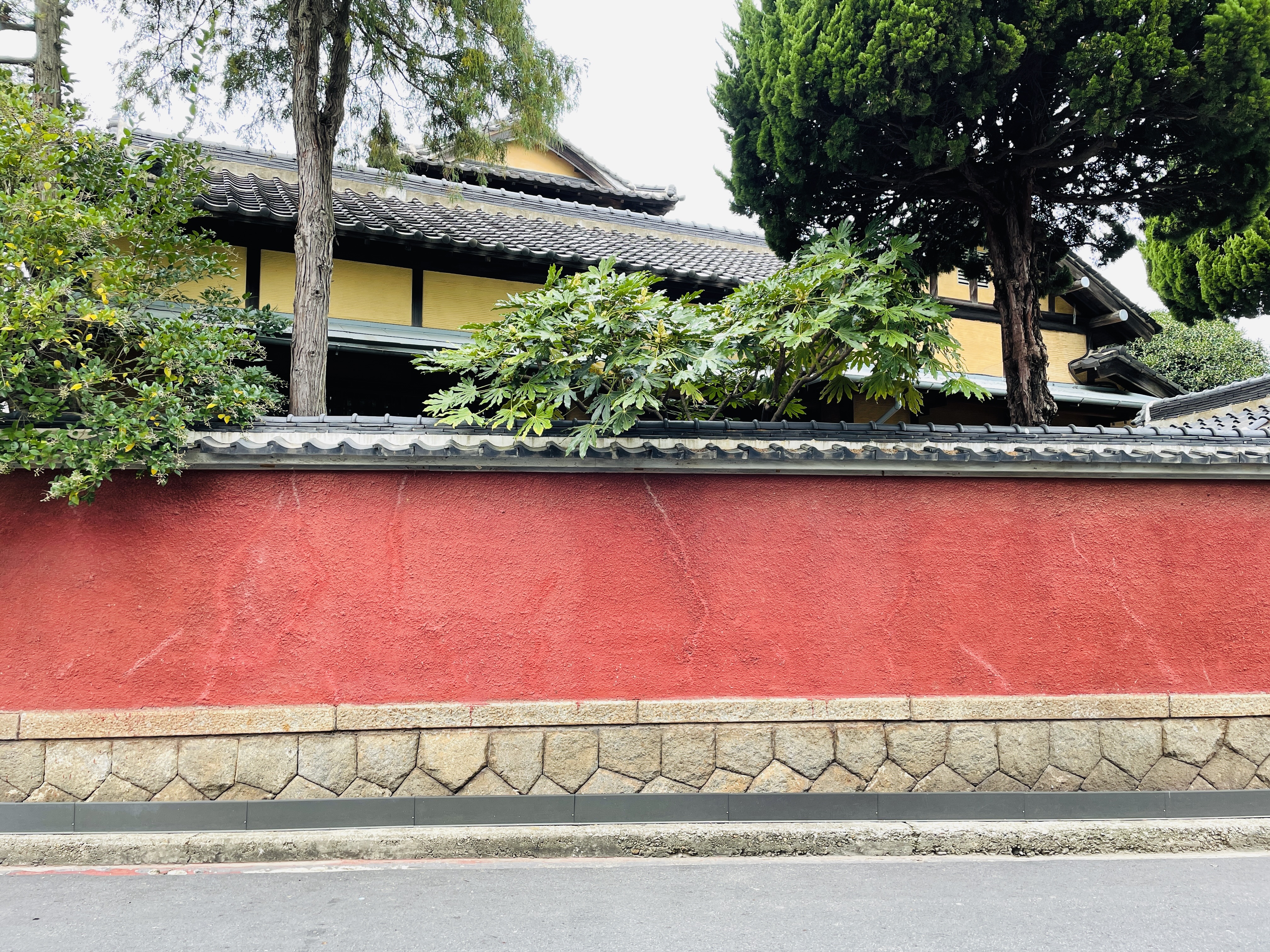 빨간 담이 인상적이다