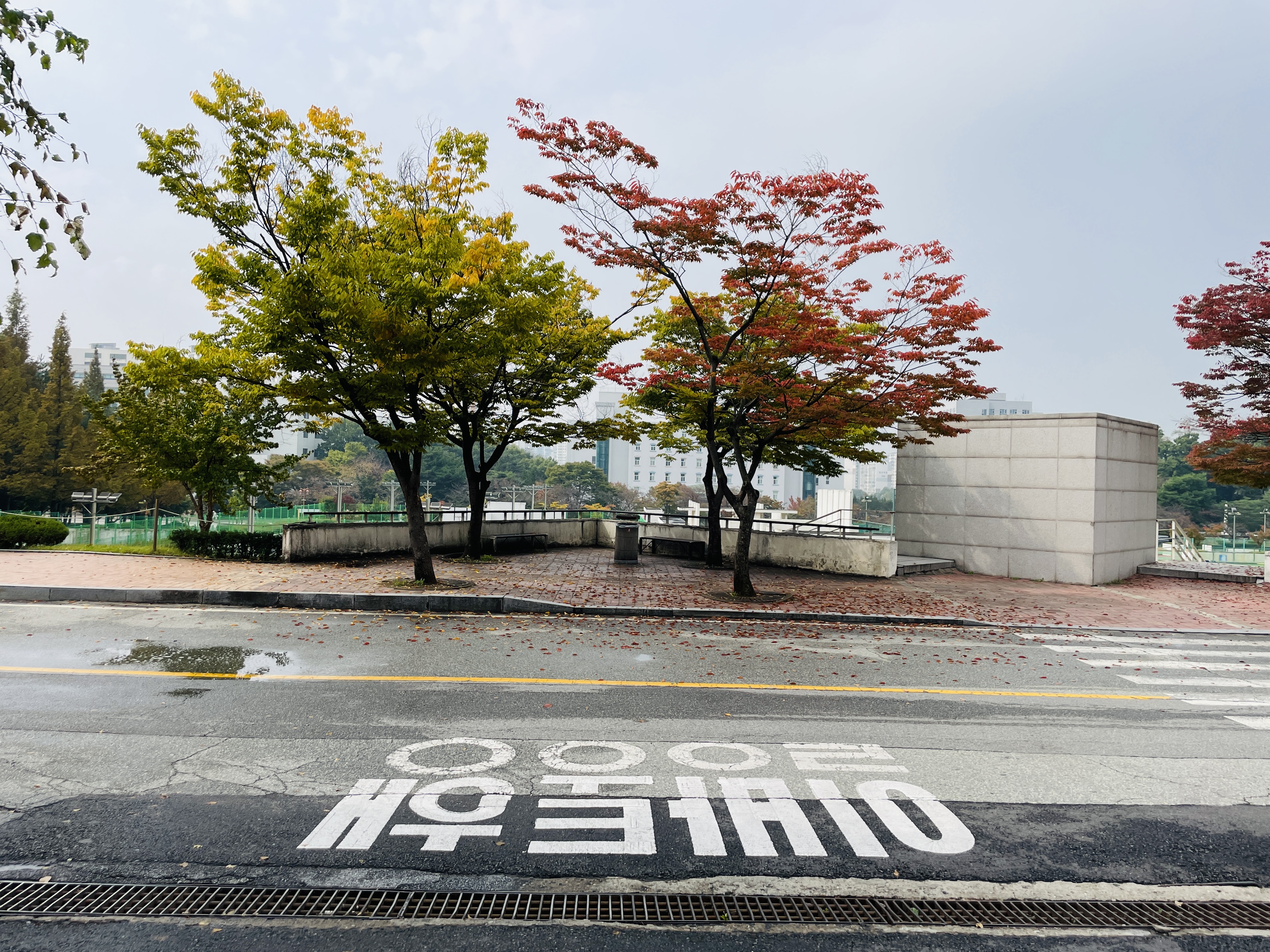 넓은 도로 건너편에 경희대 국제캠이 있었다