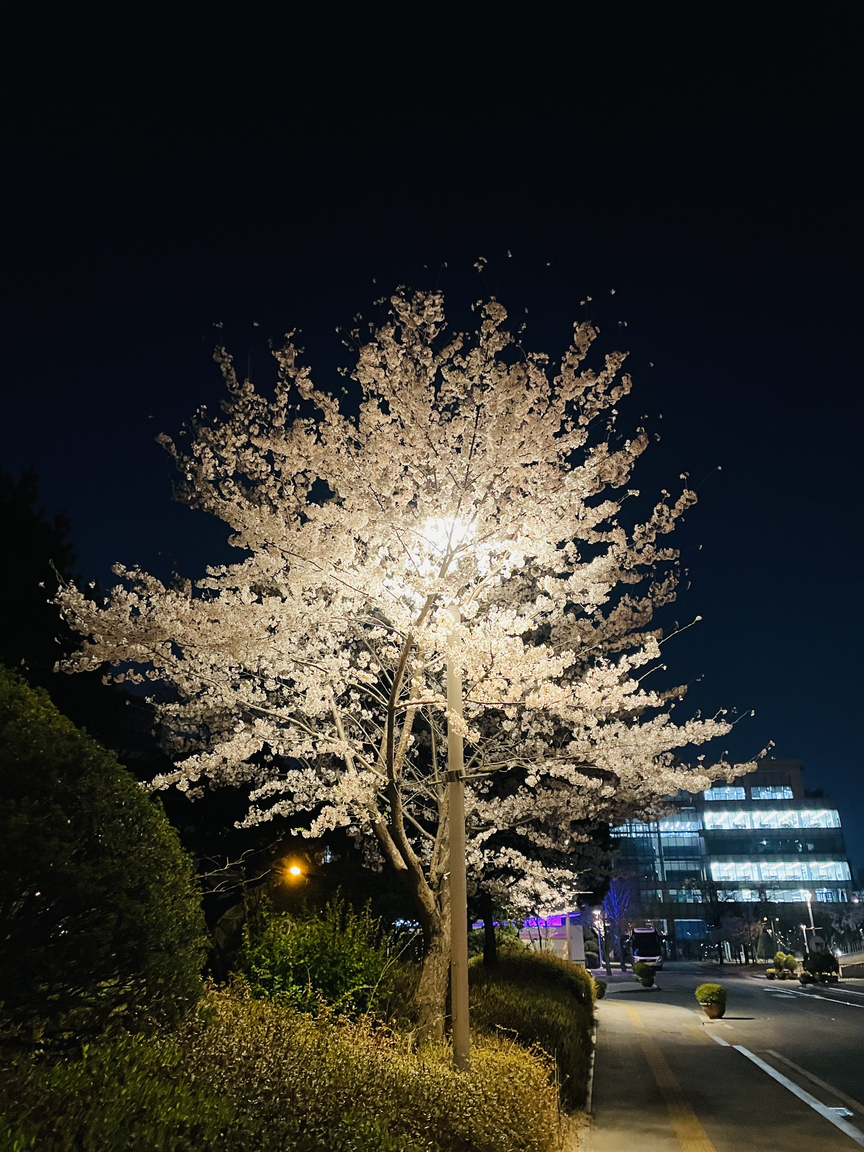 벚꽃을 불빛이 은은하게 비추니까 느낌 있음