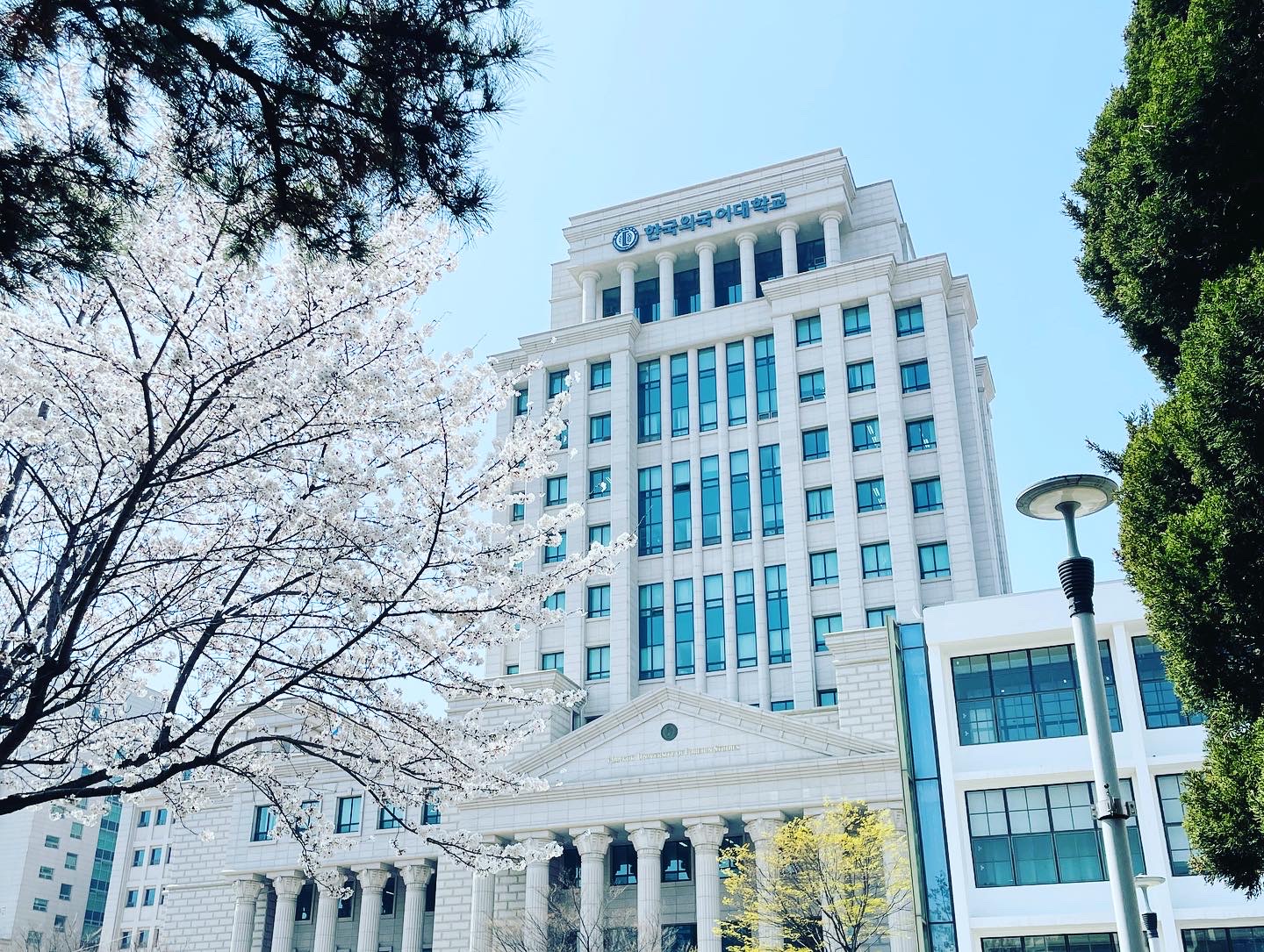 벚꽃이 학교를 빙 둘러싸고 있다