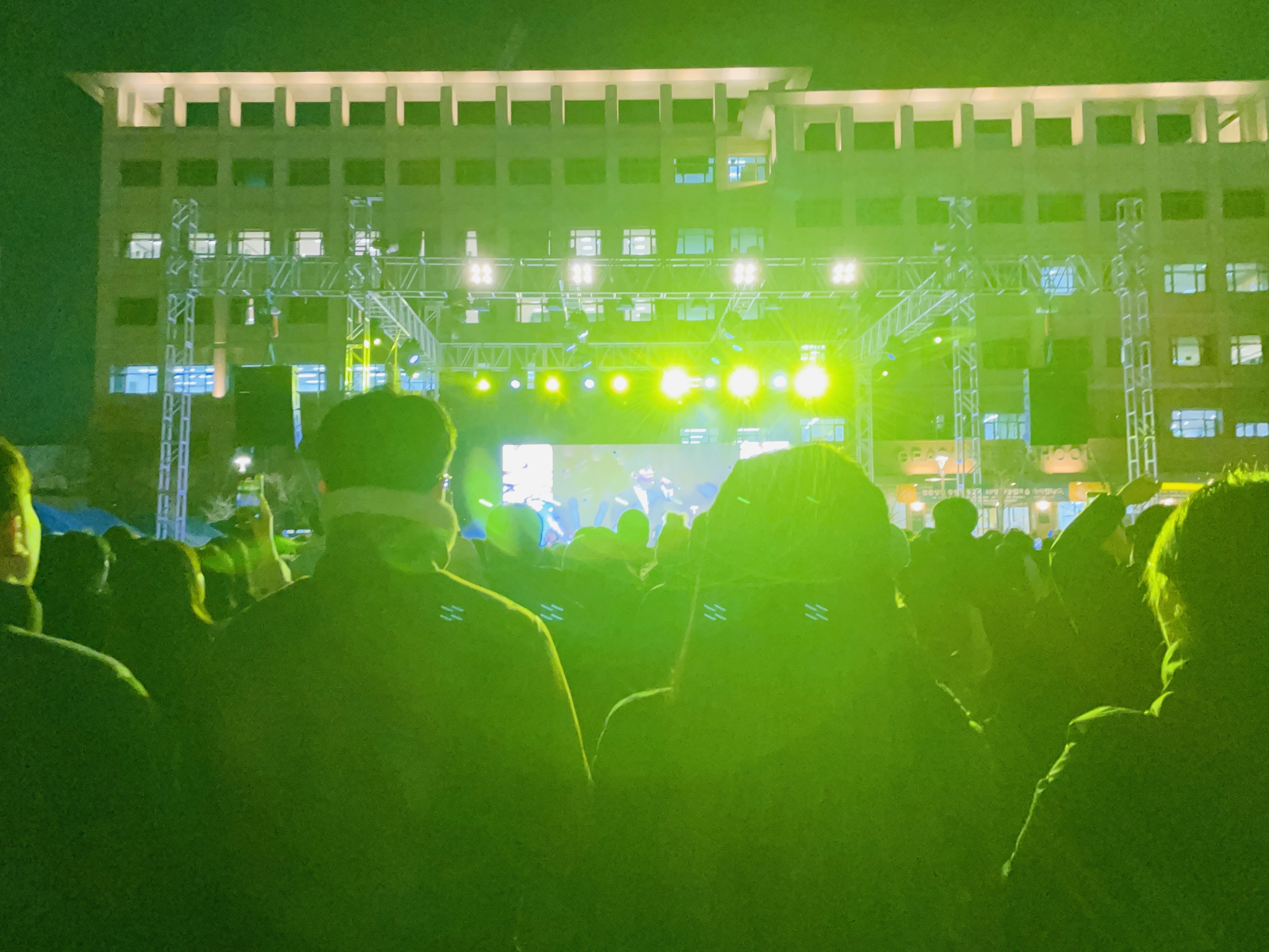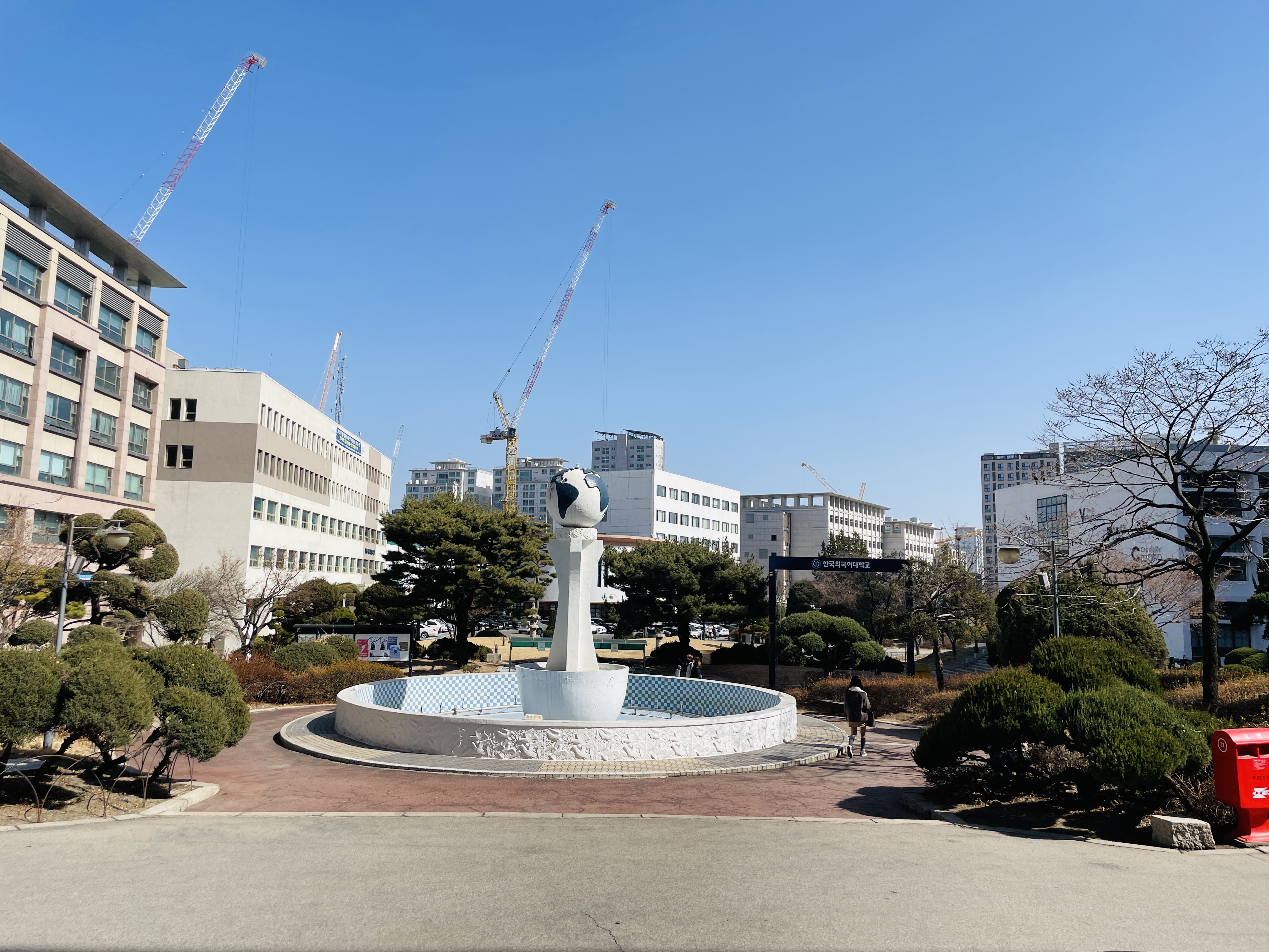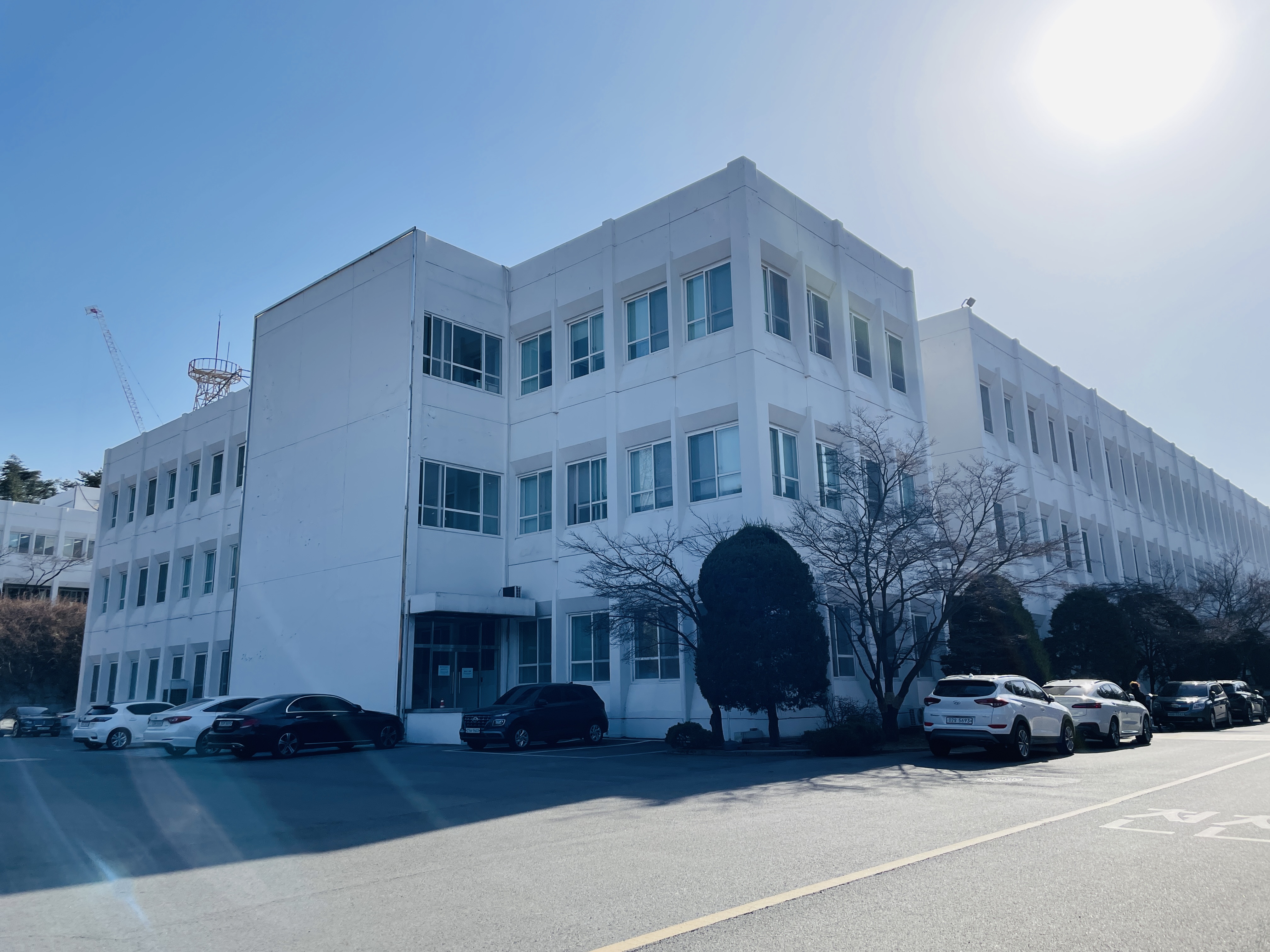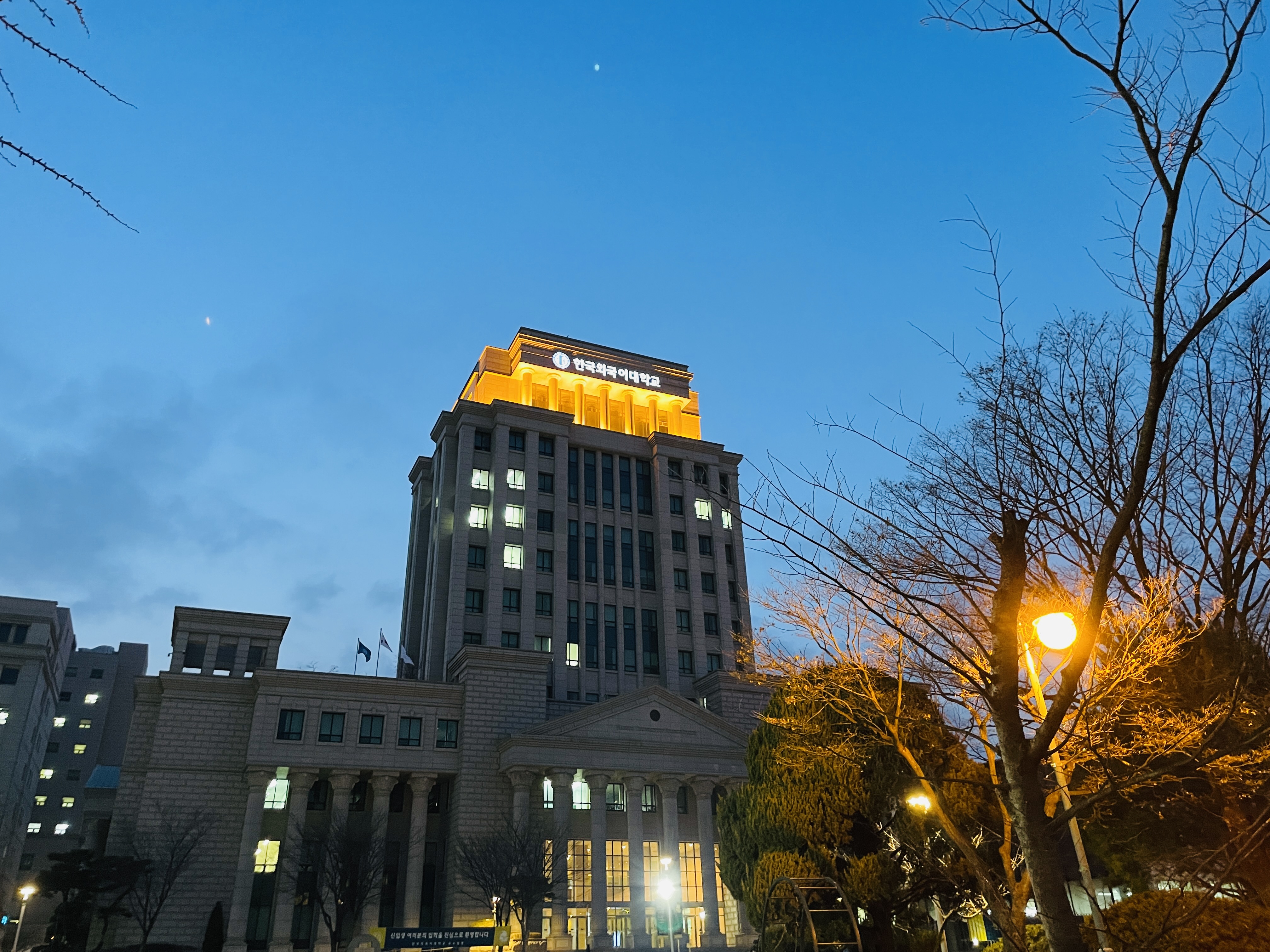 가로등을 메인에 두고 학교가 빼꼼 보이게 의도한 사진