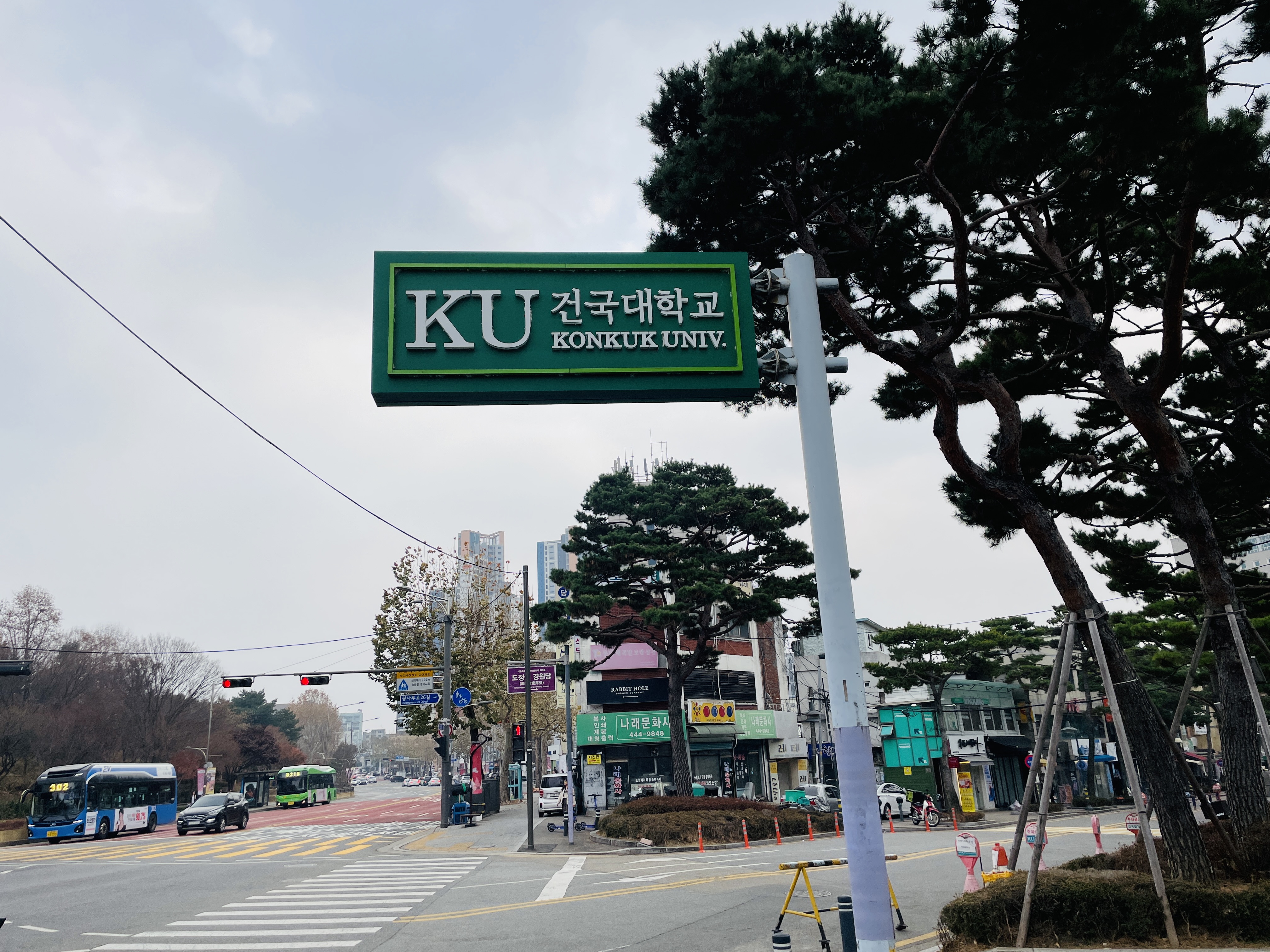경기장 맞은 편에서 버스를 기다리는 중