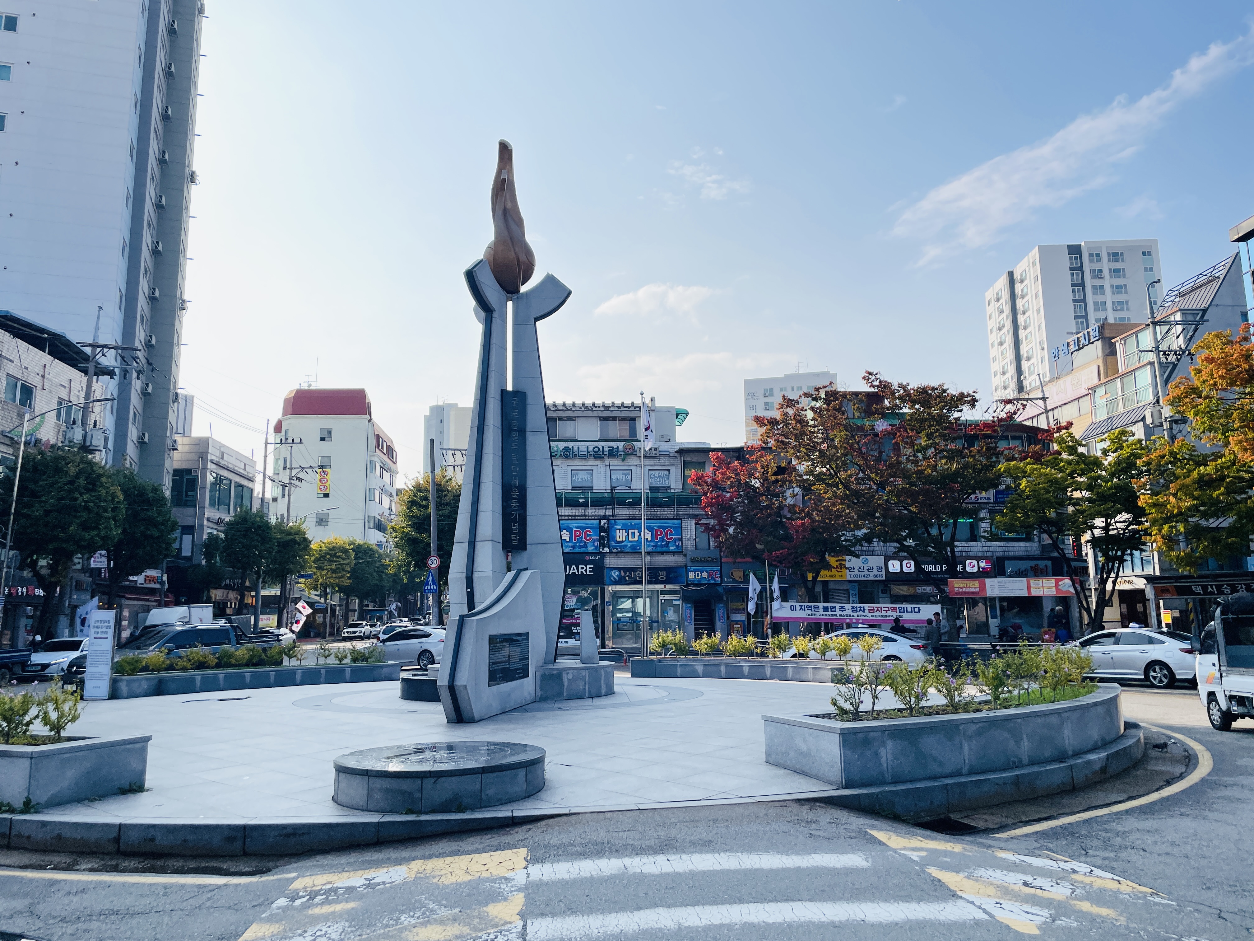 평화시장 근처에는 그를 기리는 동판이 바닥에 자리하고 있다