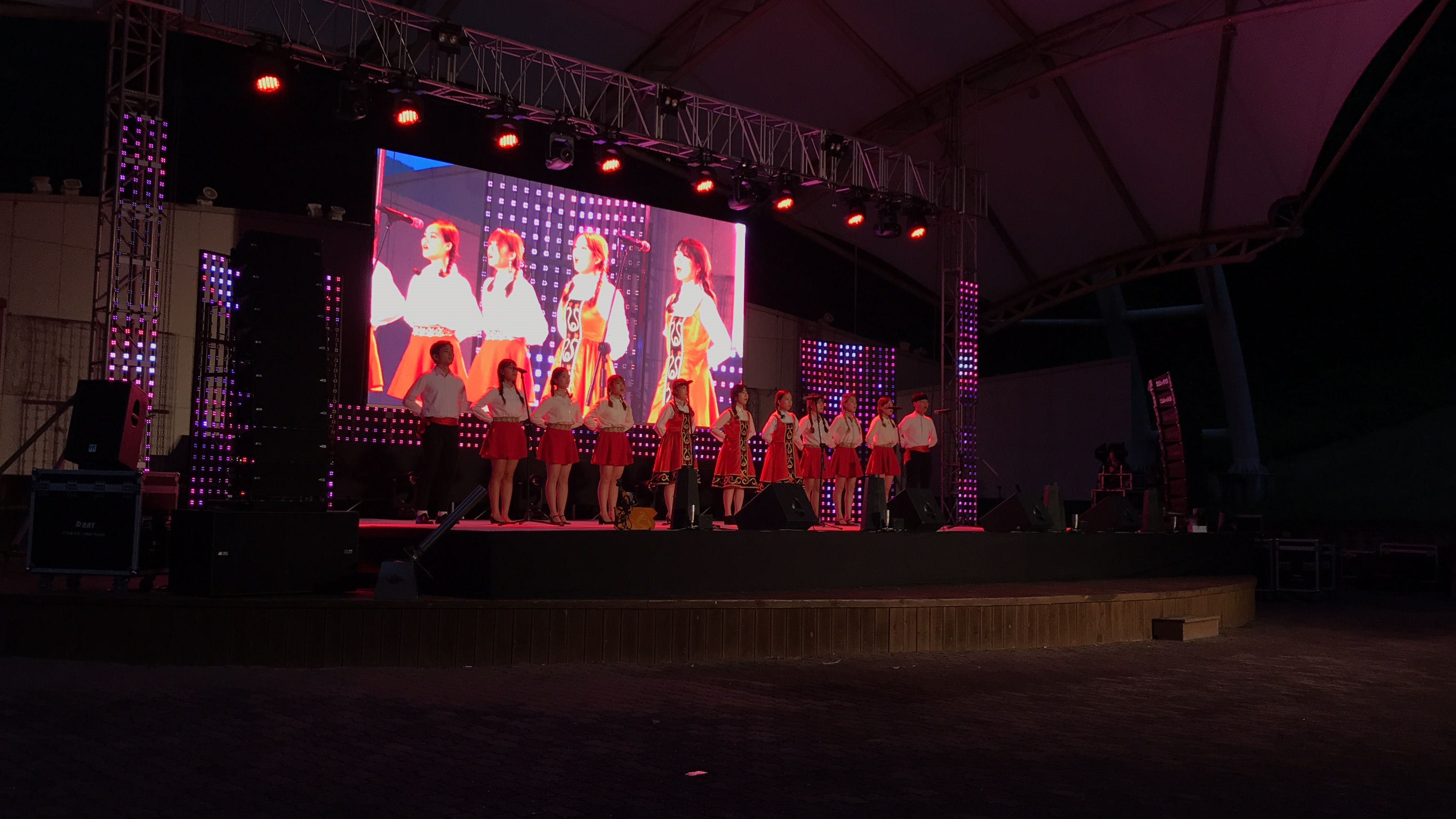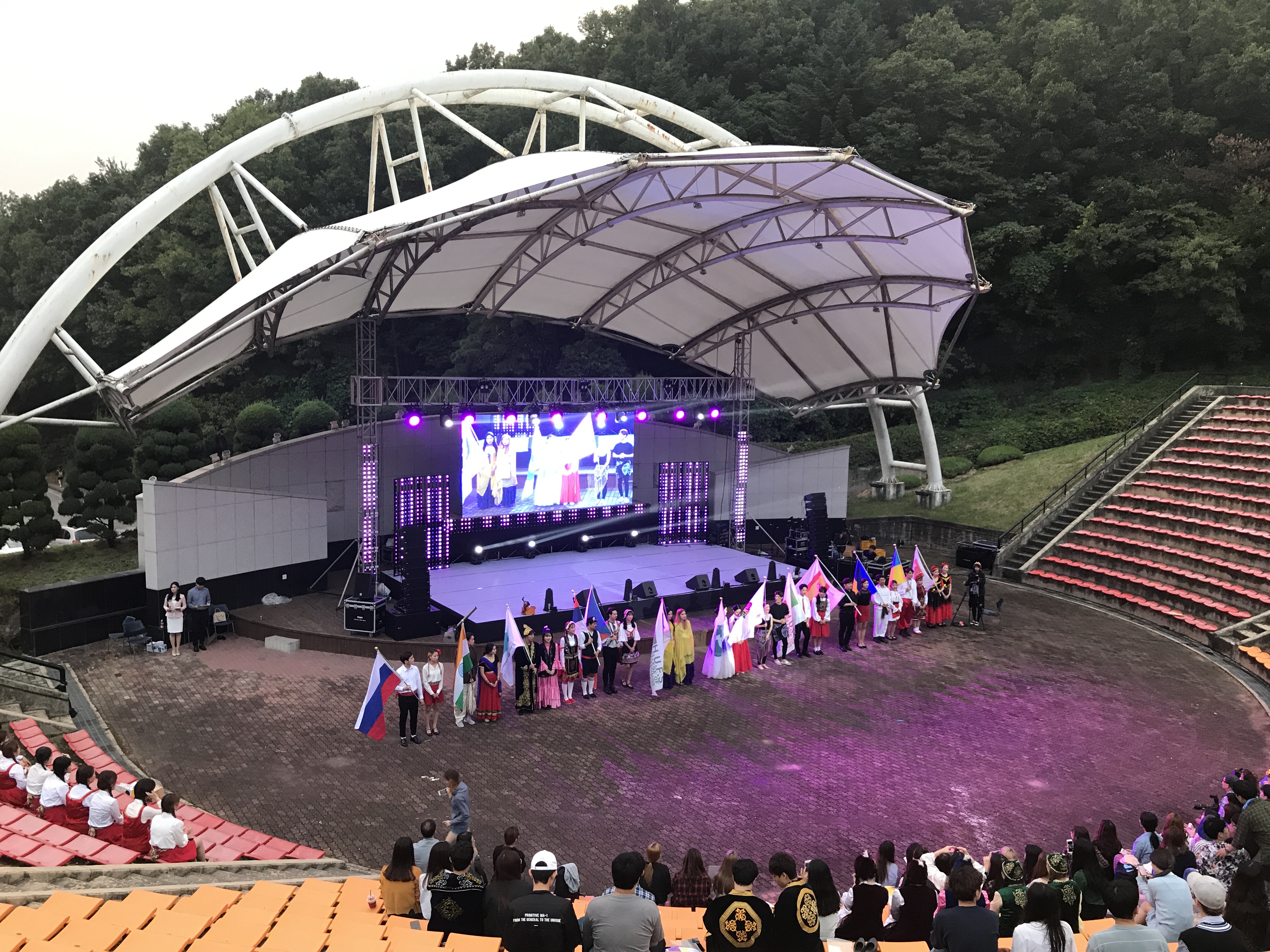 학교 호수 앞에서 축제하고 있었당
