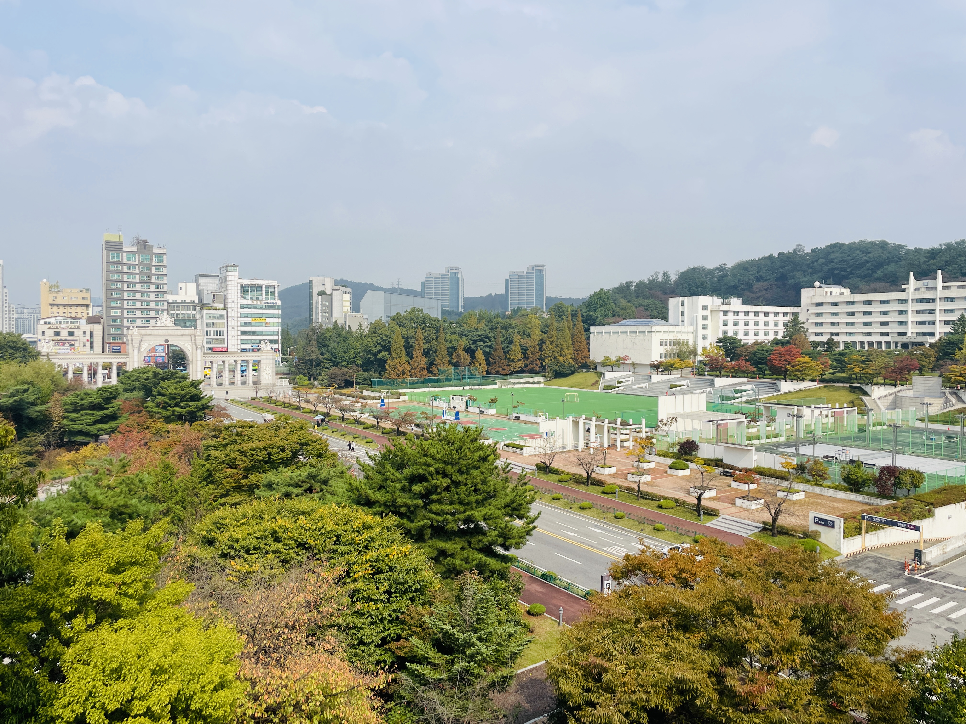넓은 도로 건너편에 경희대 국제캠이 있었다